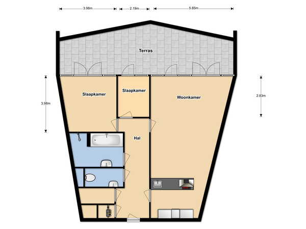 De ruime lichte woonkamer is heerlijk gelegen. Net als in alle overige vertrekken is ook de woonkamer voorzien van een fraaie pvc vloer met comfortabele CV vloerverwarming. De wanden zijn met stucwerk afgewerkt. U kunt door de vormgeving op diverse wijzen uw interieur inrichten. En de gehanteerde kleurstelling van het appartement is geschikt voor zowel een trendy als een meer behoudender interieur. U heeft vanuit de woonkamer toegang tot het riante terras. Openslaande terrasdeuren ontbreken hier niet bij!