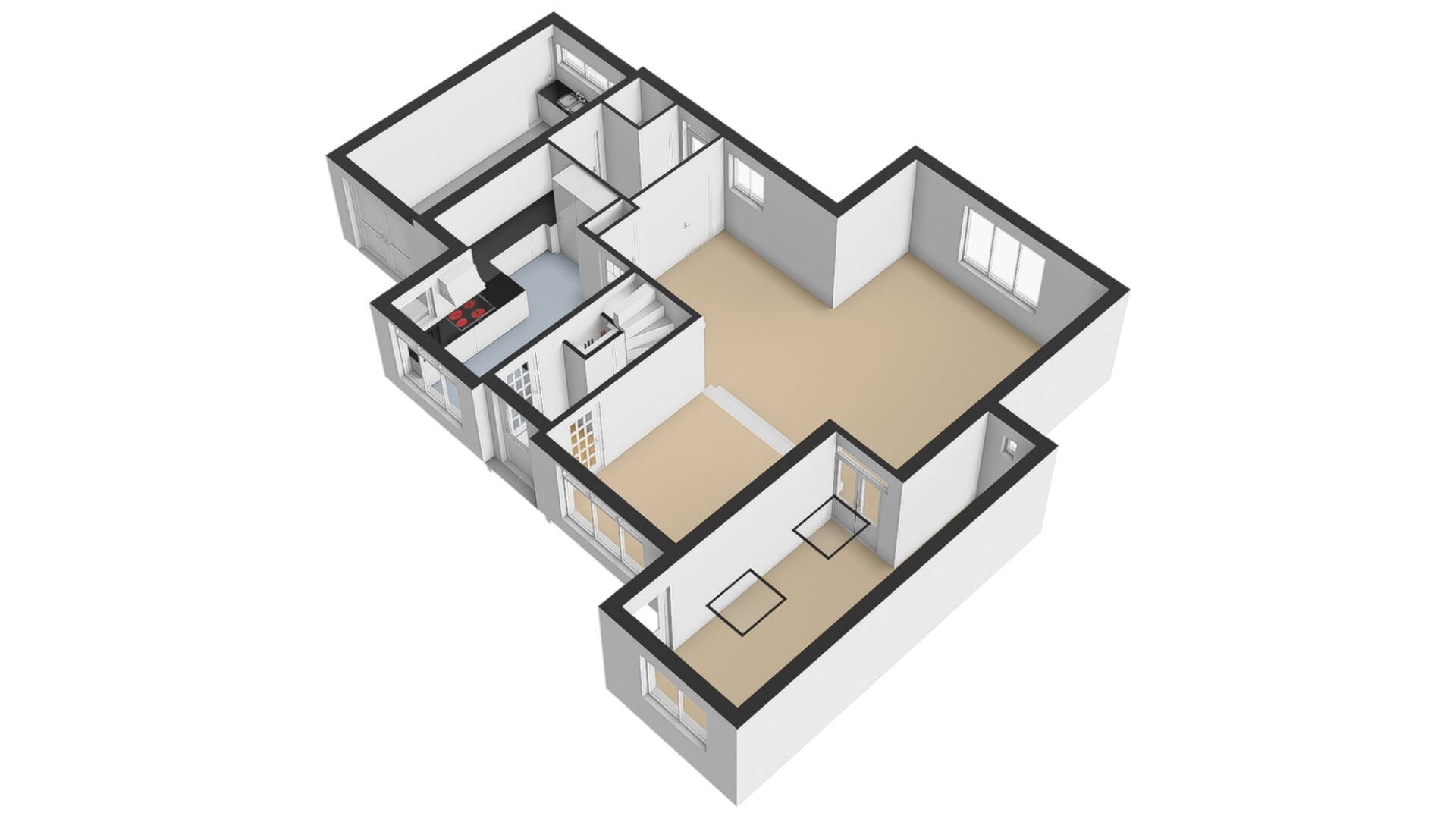 Bijkeuken: aan de achterzijde van de woning heeft u een bijkeuken tot uw beschikking. In deze bijkeuken kunt u prima uw wasmachine een plaatsje geven. In de bijkeuken treft u ook de moderne toiletruimte met hangcloset en fonteintje aan. De bijkeuken geeft tevens toegang tot de achtergelegen tuin én de inpandig bereikbare garage.