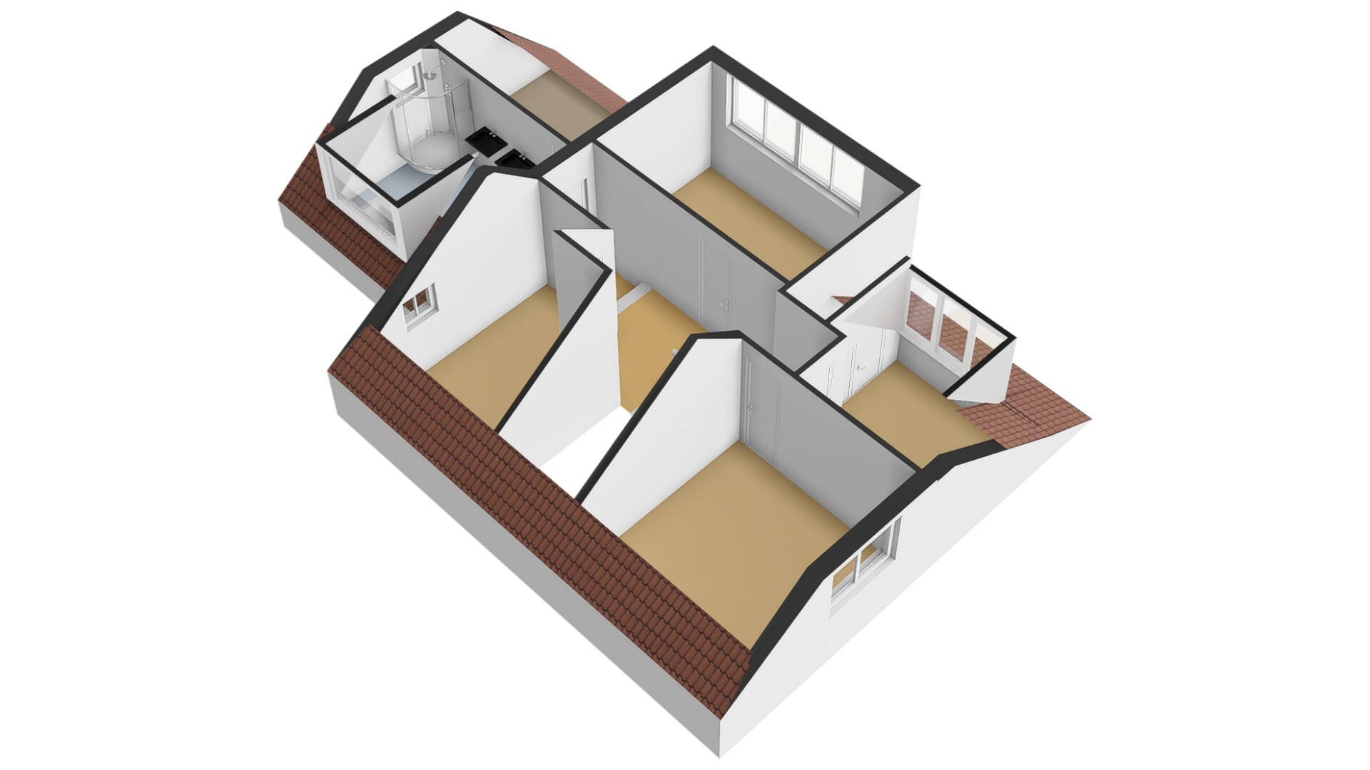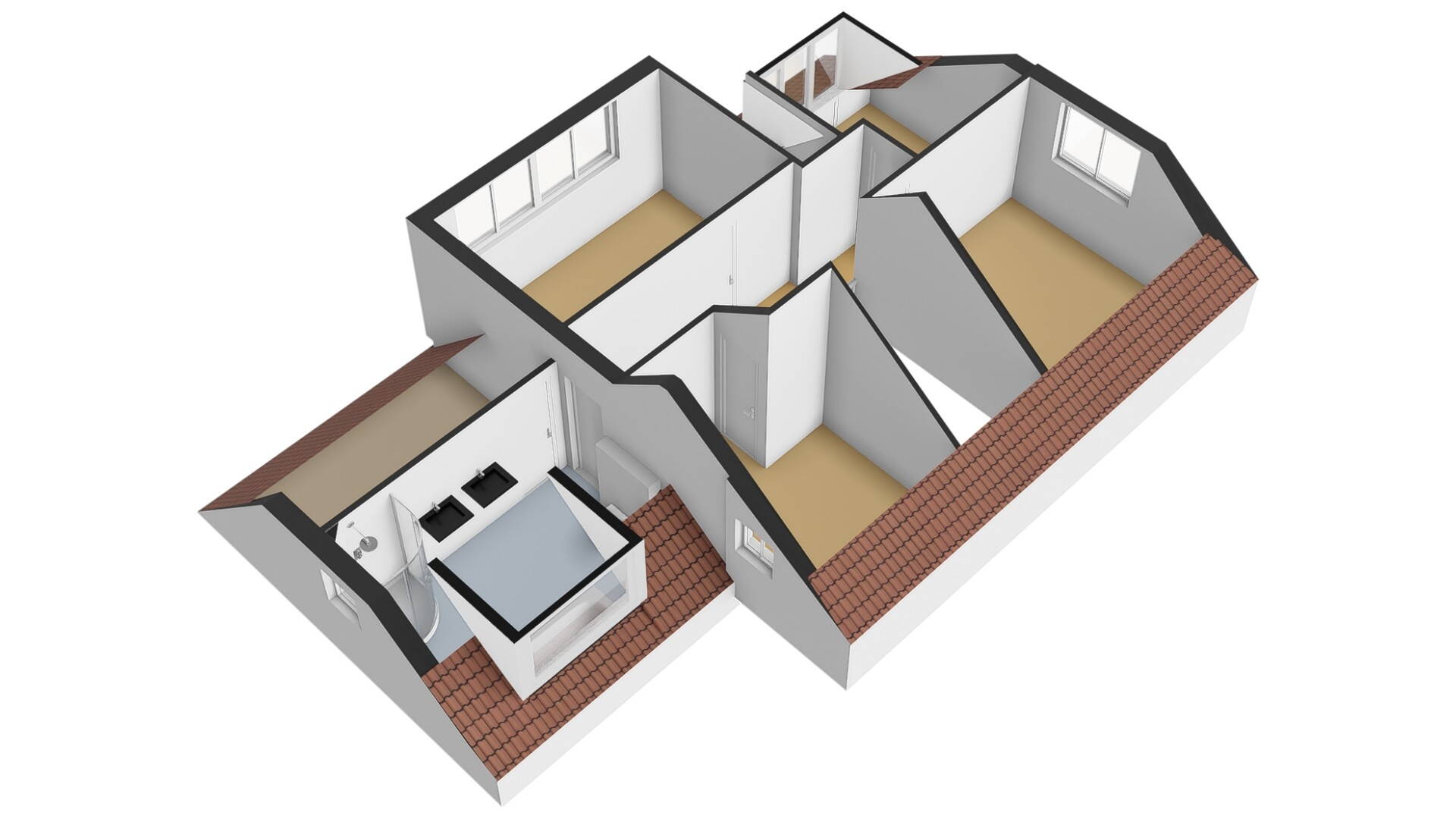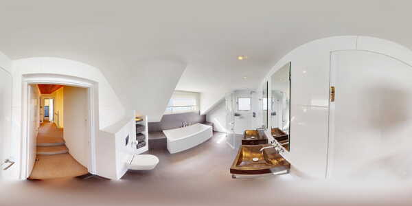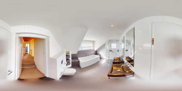 De moderne luxe badkamer is voorzien van een ligbad, ruime inloopdouche, dubbele Belgisch natuurstenen wastafel en een hangcloset. Uiteraard ontbreekt hier de cv-vloerverwarming niet. Door de aanwezige dakkapel heeft u dan ook veel ruimte in deze badkamer tot uw beschikking!