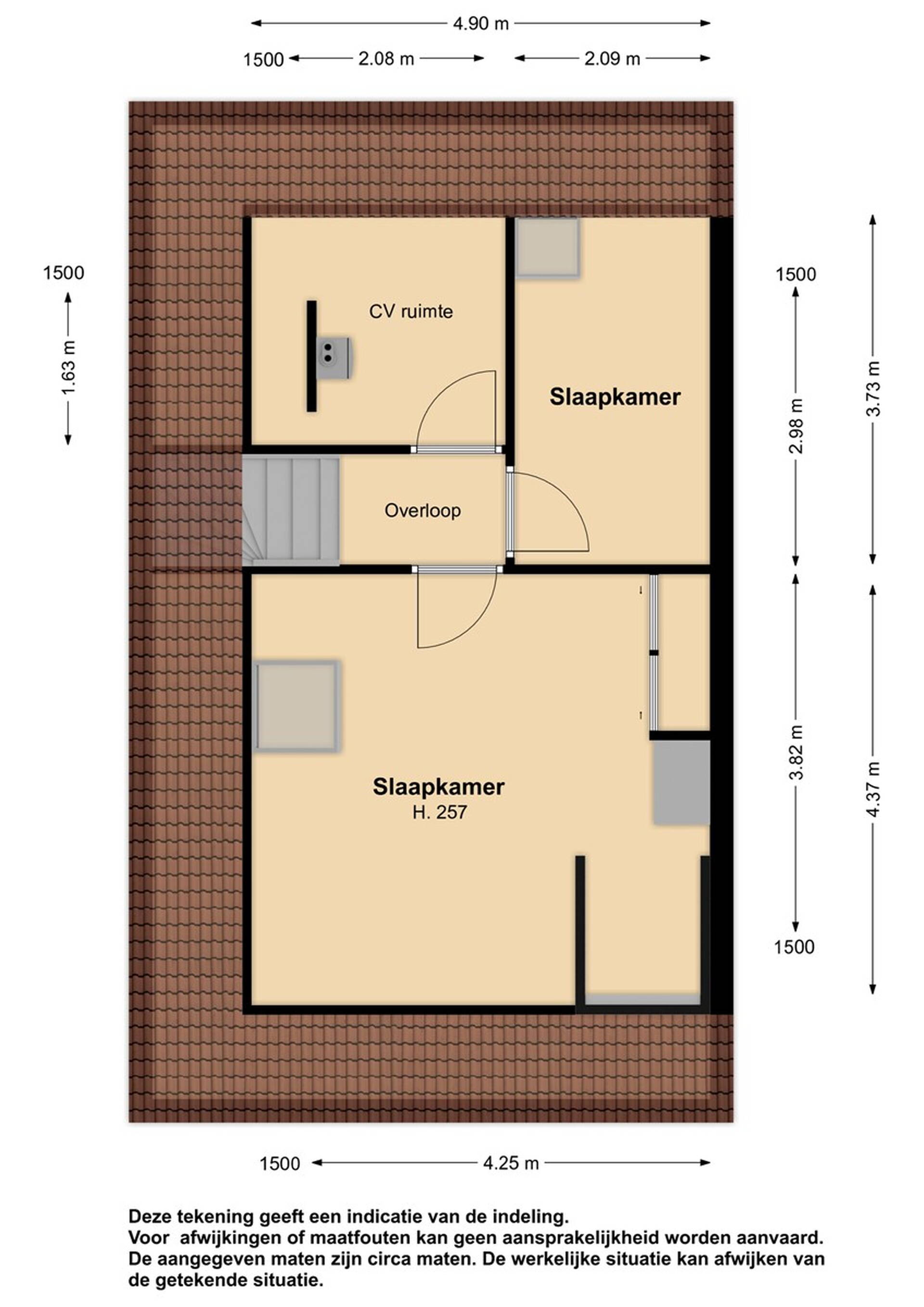 2e verdieping: de 2e verdieping is met een vaste trap bereikbaar en op deze verdieping treft u 3 ruimtes. De 1e ruimte kunt u prima gebruiken als extra opbergruimte. Hier vindt u ook de CV opstelling en de mechanische ventilatie. De overige 2 ruimtes zijn prima geschikt als slaapkamers. De slaapkamer aan de achterzijde is uitgevoerd met een dakraam en de zeer ruime slaapkamer aan de voorzijde is voorzien van een dakraam en een dakkapel. Deze kamer is een fijne tienerkamer, waar prima vriendjes of vriendinnetjes kunnen blijven slapen. Beide slaapkamers zijn afgewerkt met een laminaatvloer. De 5e slaapkamer heeft dermate riante afmetingen, dat u hier wellicht een 6e slaapkamer kan realiseren!
