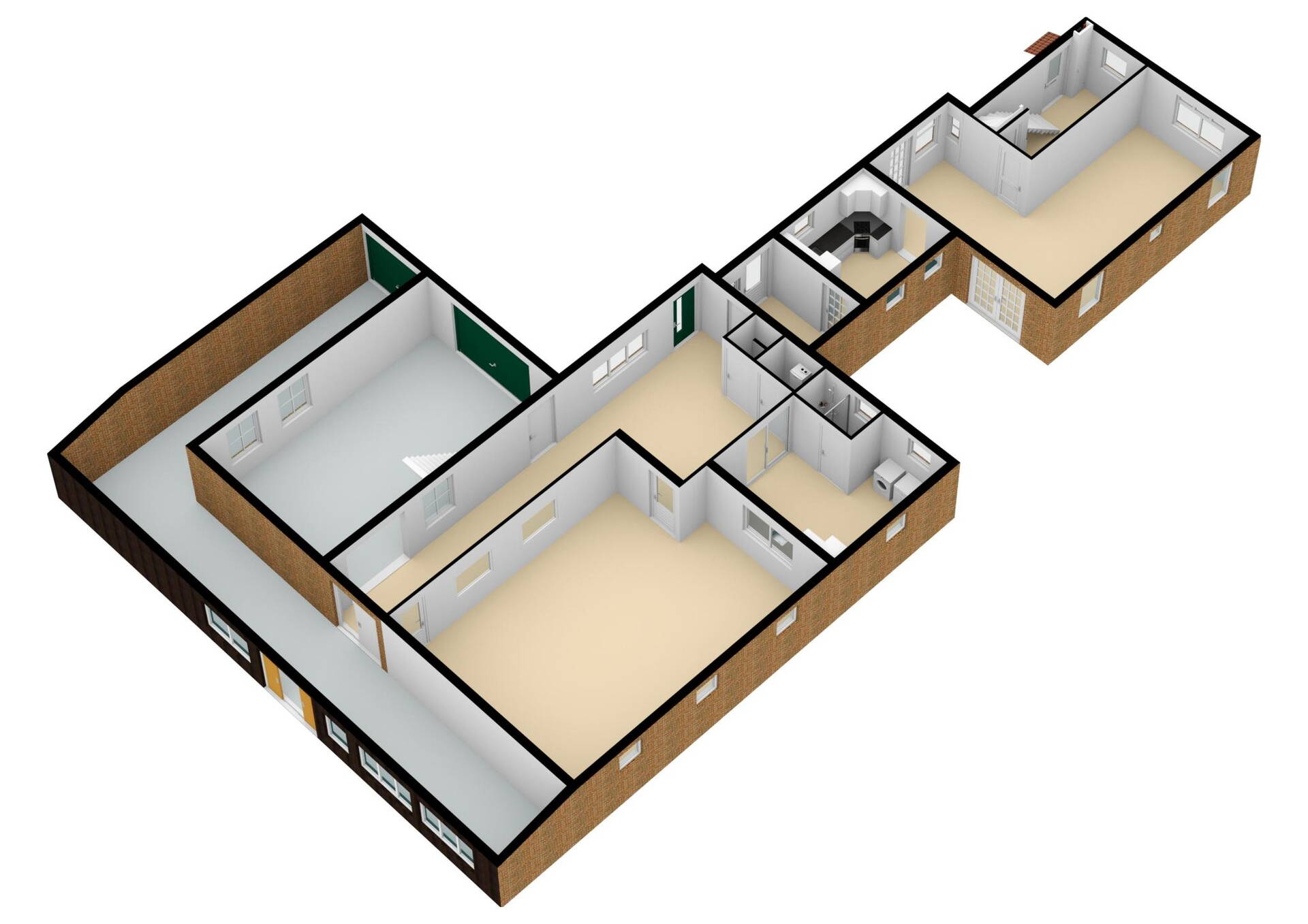 Bovendien kunt u ook hier de ruimte nog opdelen in diverse ruimtes, waardoor u nog meer extra werkruimte of salon aan huis kunt creëren. Klust u graag in huis? Dan heeft u hier een zee aan ruimte ter beschikking. De elektrisch bedienbare sectionaaldeur is natuurlijk een pré.