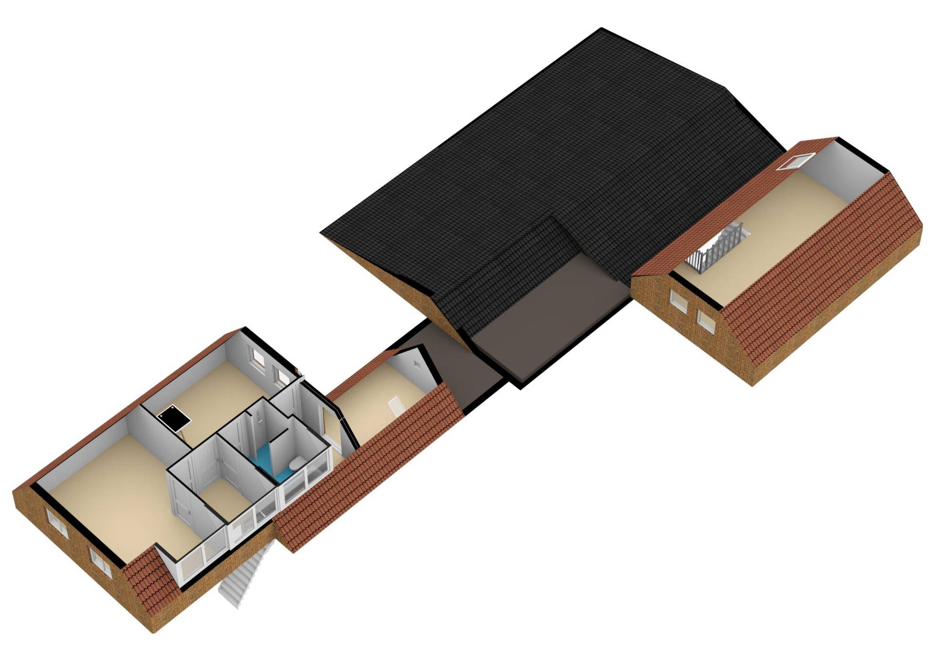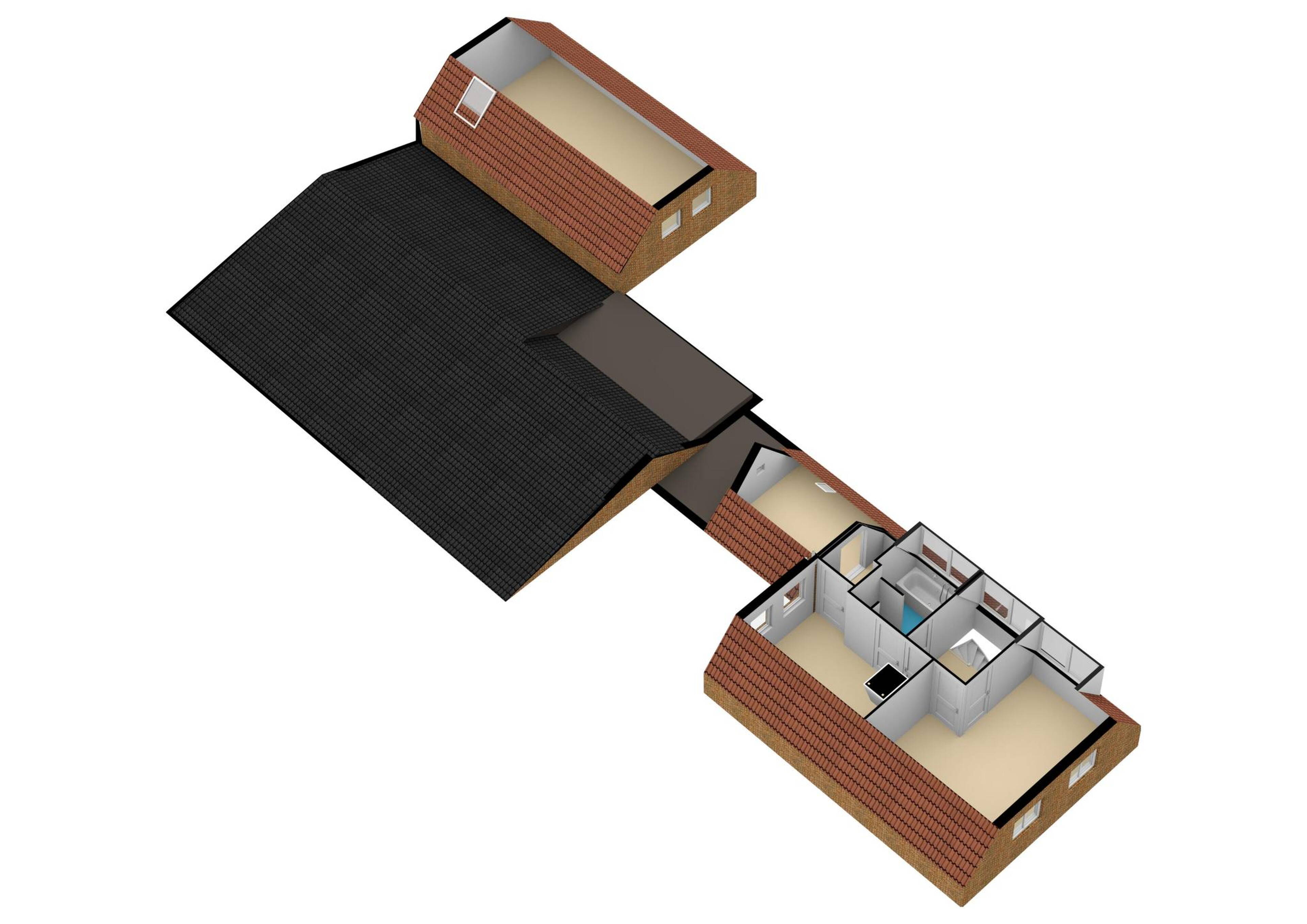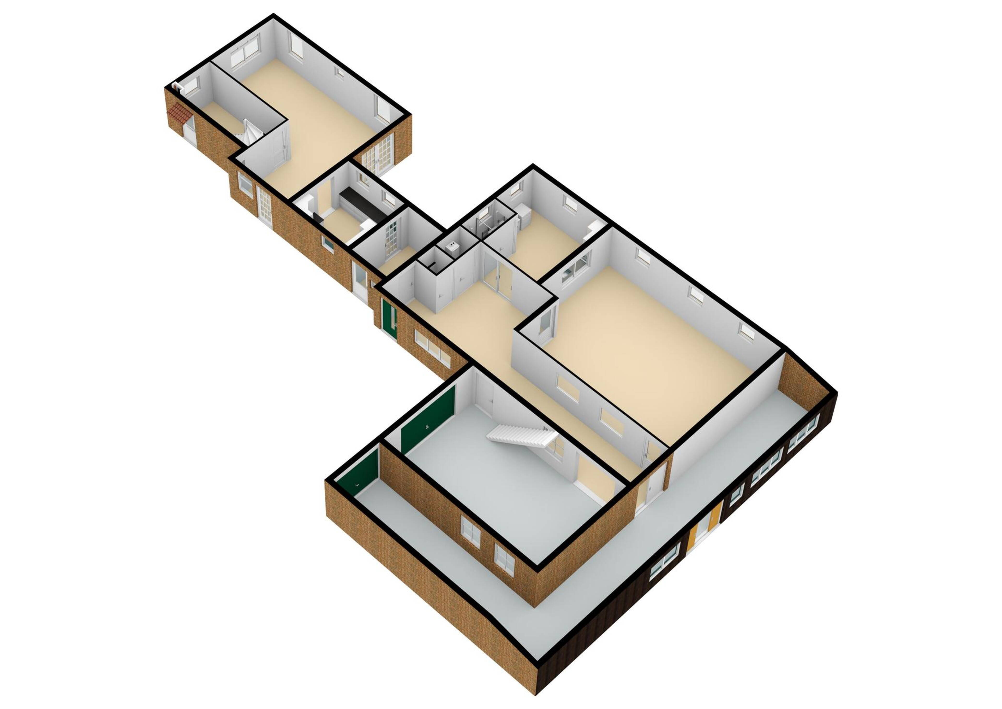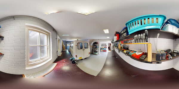 Inpandige garage/werkplaats/opslaggedeelte: via een breed tussengedeelte dat u voor diverse doeleinden kunt gebruiken, denk bijvoorbeeld aan een sportkamergedeelte, kunt u de opslagruimte, werkplaats of garage bereiken.