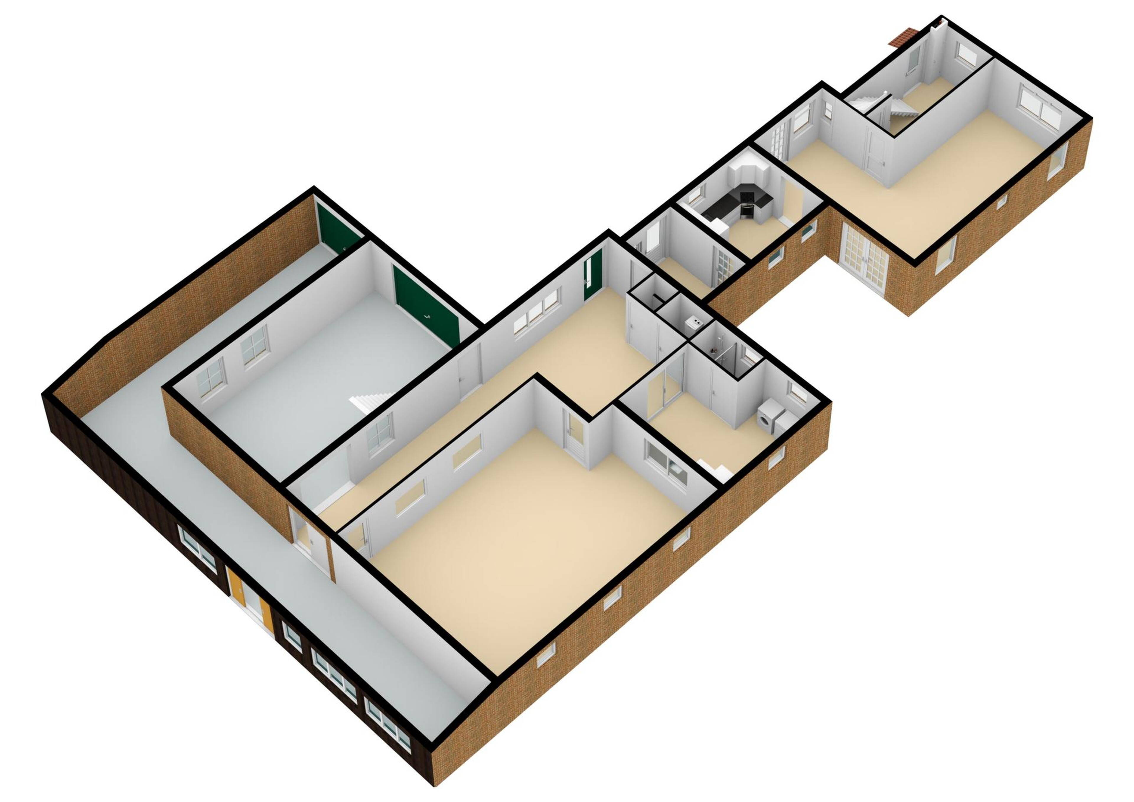 In de bijkeuken treft u vanzelfsprekend aansluitmogelijkheden voor een wasmachine en wasdroger aan. Hier vindt u tevens een functionele 2e keuken, als mede een 2e badkamer met douche en wastafelmeubel.