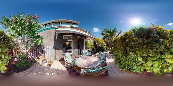 Tuin: de eigenaren hebben er voor gekozen om zowel aan de zuidzijde, alsmede de westzijde van de woning een 2-tal terrassen te maken die zo vanuit de woning bereikt kunnen worden. Zo wordt het binnen- en buitengevoel direct gecombineerd.