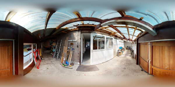 Overkapping / garage: Achter en naast het bijgebouw treft een extra verrassing aan! Nog meer ruimte! Het betreft een extra opslagruimte in een soort van L- vorm. U kunt hier bijvoorbeeld ook ideaal een boottrailer of klassieke auto stallen! Bovendien is deze ruimte eveneens voorzien van een elektrisch bedienbare sectionaaldeur. Deze ruimte beslaat zo’n 57 m².