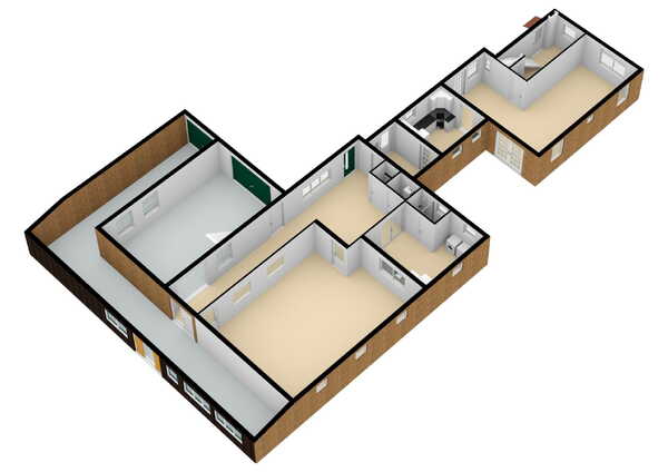 Kantoorruimte: de eigenaren hebben voorheen een kantoor/werkplek aan huis gehad. Thans is het een multi inzetbare ruimte van ca. 57 m² geworden. U kunt hier eenvoudig een 2e woonkamer, een slaapkamer (of danszaal) creëren. Hiermee wordt het ook kinderlijk eenvoudig om gelijkvloers wonen mogelijk te maken. Maar uiteraard is deze ruimte eveneens geschikt voor een grote kantoorruimte/atelier. Wilt u liever een chillruimte voor de kinderen? Ook dat behoort nu tot de mogelijkheden! Deze ruimte is voorzien van een systeemplafond en de vloer is afgewerkt met een laminaatvloer. De zijramen zorgen voor een flinke lichtinval in deze ruimte.