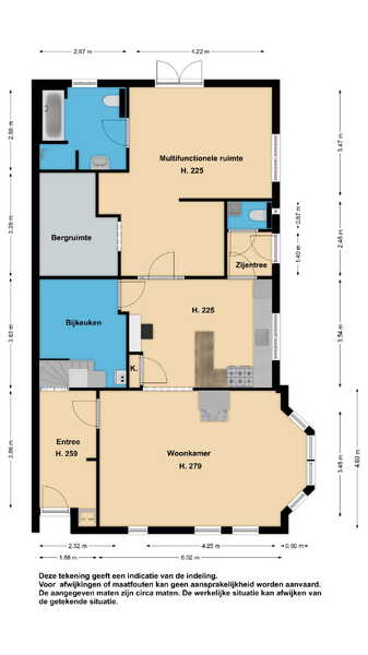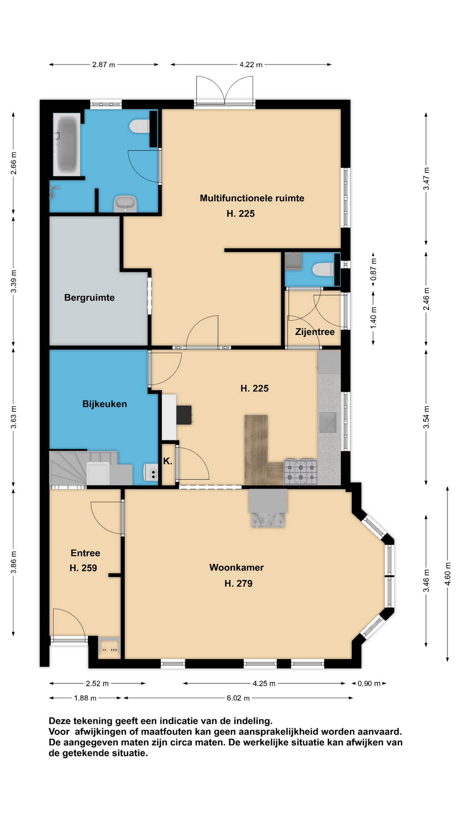 Bijkeuken: direct naast de keuken is de praktische bijkeuken gelegen. Hier treft u onder meer een aansluiting aan voor de wasmachine. Daarnaast is in deze ruimte de HR CV Combiketel geïnstalleerd. De bijkeuken biedt voldoende plaats voor een extra koelkast en/of vrieskist.
