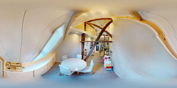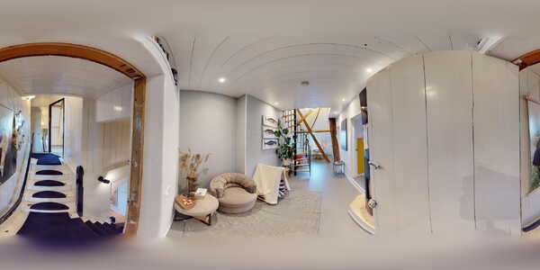 De speciale centrale ruimte op deze verdiepingsvloer kunt u ook in gebruik nemen als extra werkkamer, chillruimte voor de kids, extra televisiekamer of speelkamer voor de kleintjes. De ruimte wordt verwarmd middels een pelletkachel. Op de vloer treft u marmoleum aan, de wanden zijn voorzien van stucwerk en het plafond is afgewerkt met houten panelen. Een heerlijke ruimte om te vertoeven. De exceptionele hoogte van het plafond, de gebruiksoppervlakten en de vide die u hier zult tegenkomen, maakt dat het wonen hier een fantastische belevenis is.