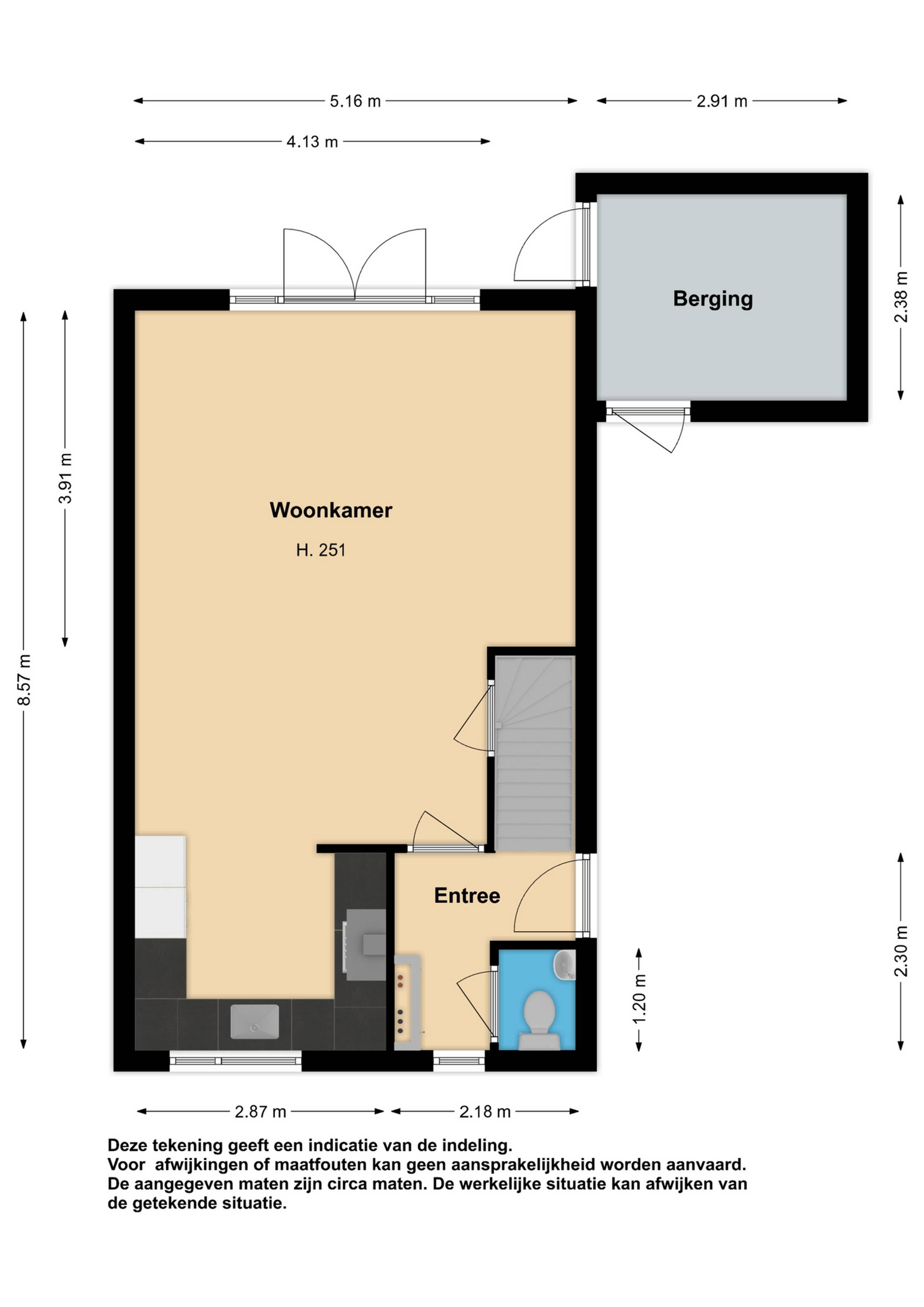 Begane grond: via de zijentree komt u in de hal met meterkast, toilet met fonteintje, garderoberuimte en toegang tot de bovenliggende etages.