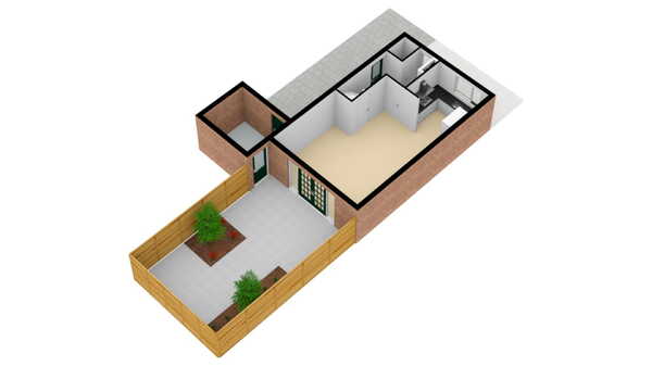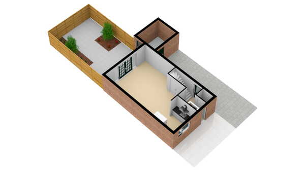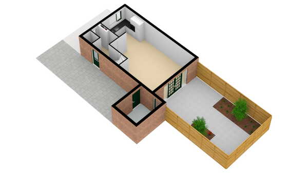 Tuin: via de openslaande tuindeuren kunt u de achtergelegen tuin bereiken. De tuinligging zorgt ervoor dat het westenzonnetje heerlijk in de tuin staat. De achtertuin is nagenoeg volledig voorzien van sierbestrating en hierdoor bijna onderhoudsvrij. De combinatie met een aantal borders geeft een leuk effect in de tuin. Voor de nodige schaduw heeft u een zonnescherm tot uw beschikking.