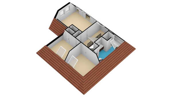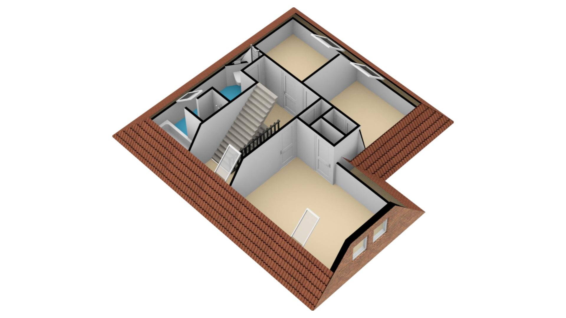 2e verdieping: met een vaste trap bereikt u de 2e verdieping van de woning. U kunt hier eventueel prima nog een bescheiden slaapkamer creëren. Met de extra ruimte op de parterre meegenomen kunt u dan in totaal komen op 5 slaapkamers. Een dakraam op de 2e verdieping is reeds aanwezig.