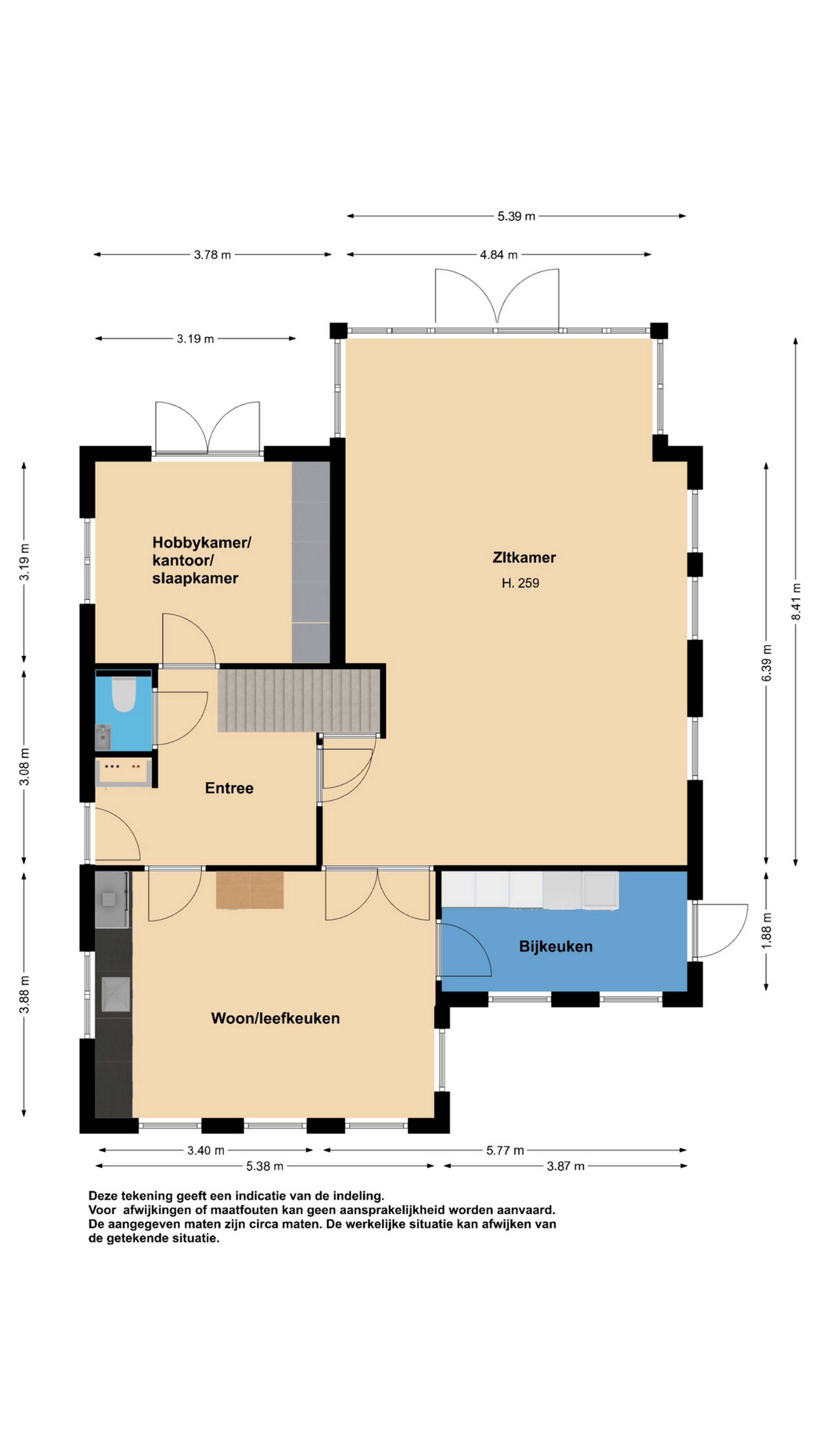 Hobbyschuur / bijgebouw / paardenstal / kas: de ruime hobbyschuur is voor klussers een droomruimte. U kunt hier heerlijk sleutelen aan uw klassieker of bootje. De schuur is bovendien voorzien van extra verdieping bereikbaar met een vaste trap welke u eventueel omhoog kunt scharnieren. Aan de achterzijde van de schuur heeft u tevens de mogelijkheid om uw tiener (s) een eigen domein te geven. Op de begane grond vindt u een keukenblok met warm en koud stromend water. Bovendien heeft u hier een extra toiletruimte tot uw beschikking. U kunt deze ruimte uiteraard ook gebruiken als (2e) kantoor of praktijk aan huis.