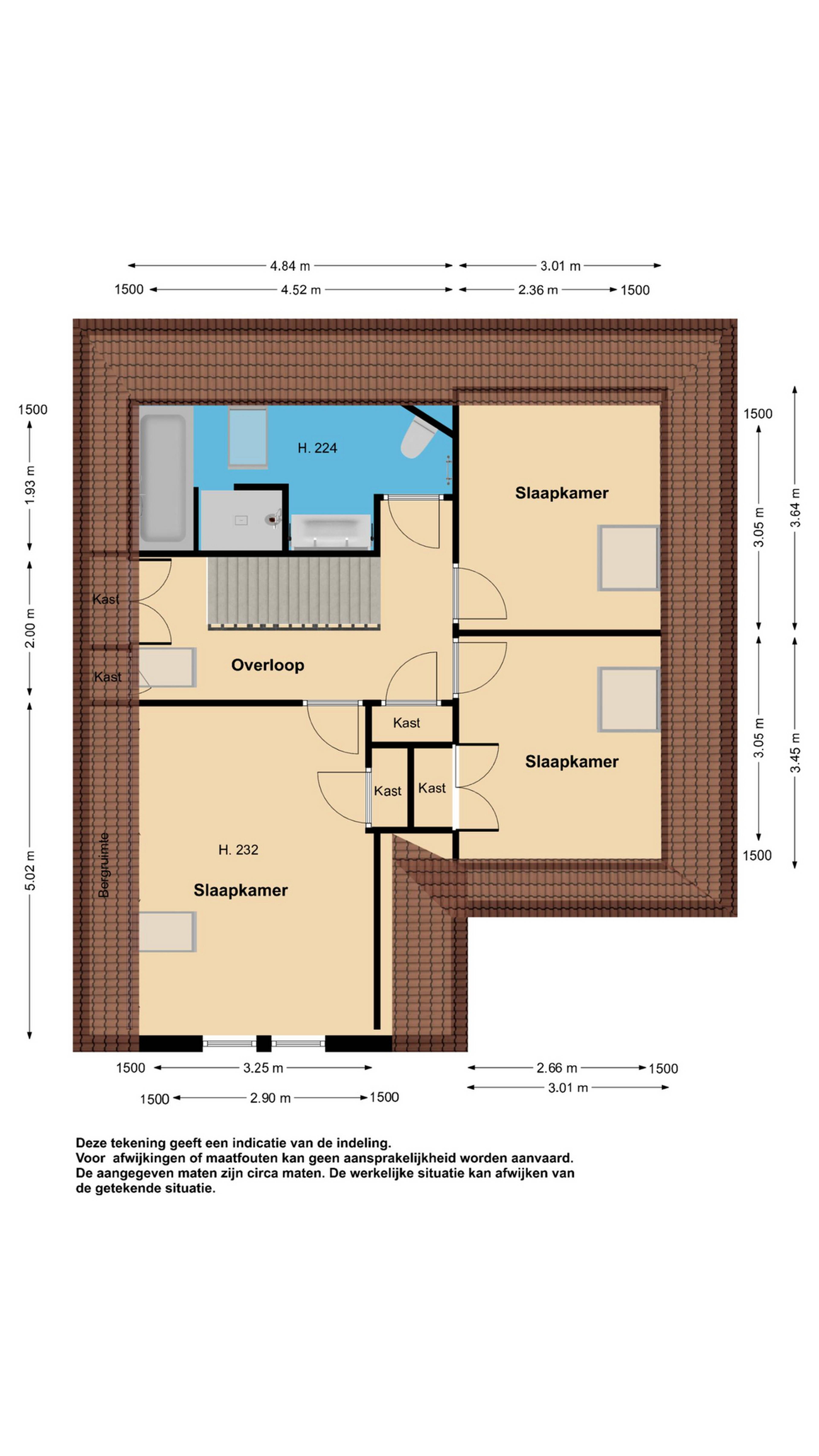1e verdieping: op de 1e verdieping bevinden zich 3 zeer ruime slaapkamers van verschillende afmetingen. U kunt prima in alle slaapkamers een tweepersoonsbed plaatsen. In een van de slaapkamers heeft u achter de knieschotten extra opbergruimte ter beschikking. Alle slaapkamers zijn fraai afgewerkt!