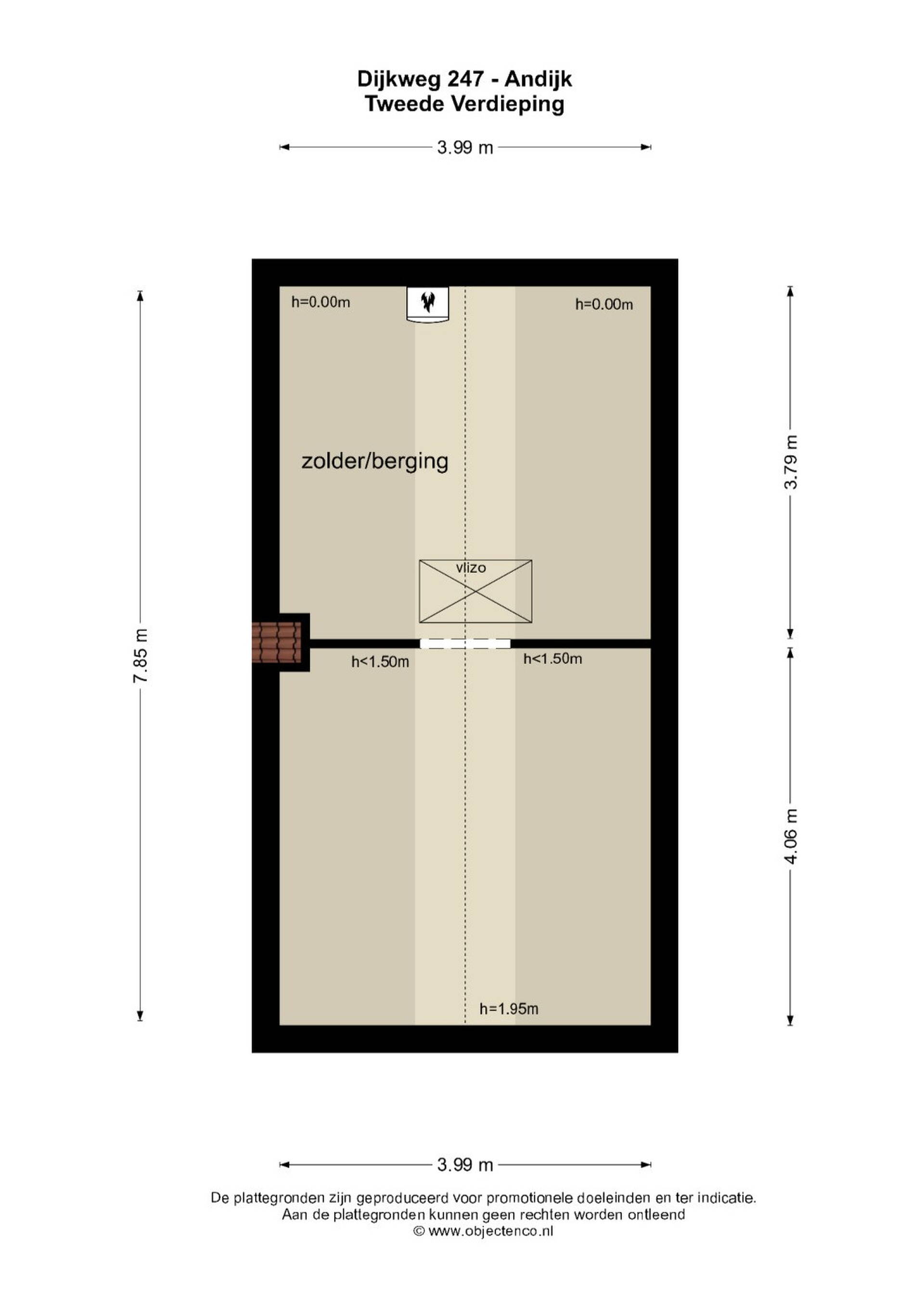Op de 2e verdieping bevind zich een royale vliering die middels een vlizotrap te bereiken is.