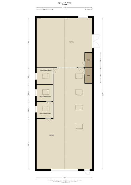 De woning beschikt over een gigantische garage van maar liefst 27 x 10 meter, compleet met een extra brede en hoge roldeur. Deze ruimte biedt eindeloze mogelijkheden voor hobby's, opslag van een camper of een bootje met een trailer.