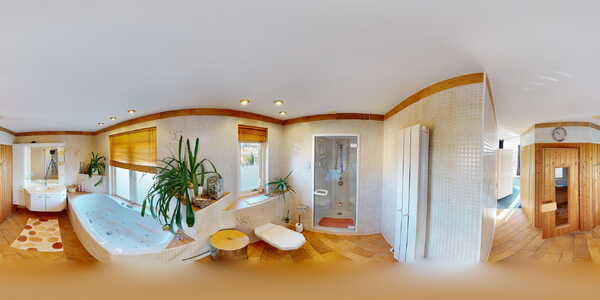 Je kan werkelijk spreken van een mega badkamer! Een heuse welness ruimte! U heeft namelijk een traditionele complete sauna tot uw beschikking. Heerlijk om na het harde werken te ontspannen in deze ruime sauna. Verder is de badkamer voorzien van een whirlpool ligbad, wastafelmeubel, stoom/douchegelegenheid en een hangcloset. De badkamer is volledig betegeld in een warme kleurstelling.