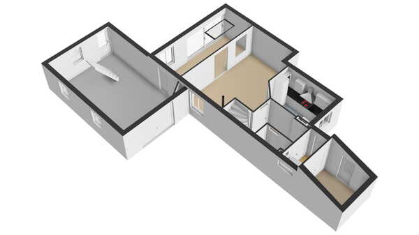 De besloten keurige keuken in L-vorm is aan de voorzijde van de woning geplaatst en uitgevoerd met een granieten blad. De ruime keuken is voorzien van een afzuigkap, keramische kookplaat, hete luchtoven, vaatwasser, koelkast en vriezer. De keuken is door de vormgeving voorzien van veel werkruimte en opbergruimte. U kunt hier prima uw kooktalenten etaleren!