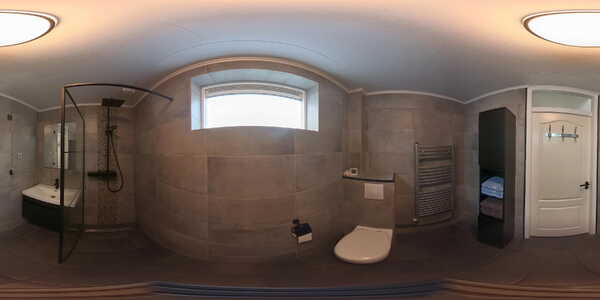 De badkamer is voorzien van een vrijhangend wandcloset, inloopdouche met regen- en losse handdouche en een modern badkamermeubel met spiegel. Door de gekozen kleur van de wandtegels i.c.m. sierstenen als wandbekleding in de douche waant u zich bijna in een luxe spa of wellness.