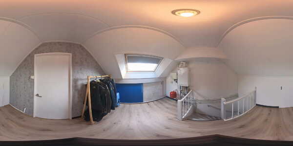 Als we de trap opgaan naar de 2e verdieping, komen we op de ruime voorzolder uit, waar u achter de knieschotten nog genoeg ruimte heeft om alle spulletjes die u weinig gebruikt uit het zicht op te ruimen.