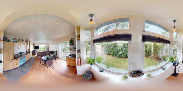 U zult verrast zijn over het uitzicht in deze gezellige woonkamer! Door de diverse ramen aan de voorzijde, de beide zijkanten en de achterzijde van de woning heeft u veel licht en zon in de woonkamer! Dat geeft een ruimtelijk gevoel en is een heerlijke plek om te vertoeven.