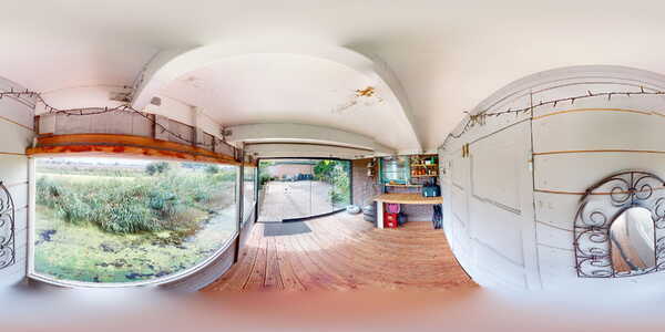 Achterin de tuin treft u een veranda aan, waar u prima met vrienden van een gezellige avond kunt genieten. De veranda is volledig af te sluiten met glazen schuifdeuren. Vanaf een loungebank kunt u hier fijn genieten van het uitzicht. U hoeft gelukkig met warm weer niet binnen op uw bank te zitten om van het levende schilderij te genieten! In deze veranda heeft u ook extra bergruimte tot uw beschikking, dat netjes afgesloten is middels 2 openslaande deuren.