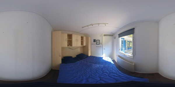 Als we binnenkomen in de hal valt gelijk het natuurlijke zonlicht op wat door het grote raam naast de voordeur naar binnenkomt. De centraal gelegen hal biedt toegang tot 2 slaapkamers van verschillend formaat, waarbij er in de grote slaapkamer een 2 persoons bed met kastombouw voor u klaar staat waar u nog de nodige spulletjes in kunt opbergen. De tweede slaapkamer is momenteel nagenoeg leeg, maar u zou hier prima een stapelbed in kunnen plaatsen, zodat u hier met 4 personen heerlijk kunt verblijven.