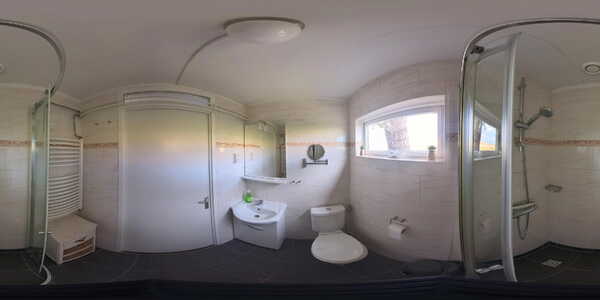 De hal biedt ook toegang tot de bergruimte waar de CV-combiketel nu hangt, maar deze ruimte zou u ook kunnen gebruiken om bijvoorbeeld een wasmachine te plaatsen. De badkamer is prima van formaat en is voorzien van een douche, toilet, badkamer meubel met wasbak. spiegel en planchet en zelfs hier hangt een radiator waar u uw handdoek op kunt drogen na het douchen.