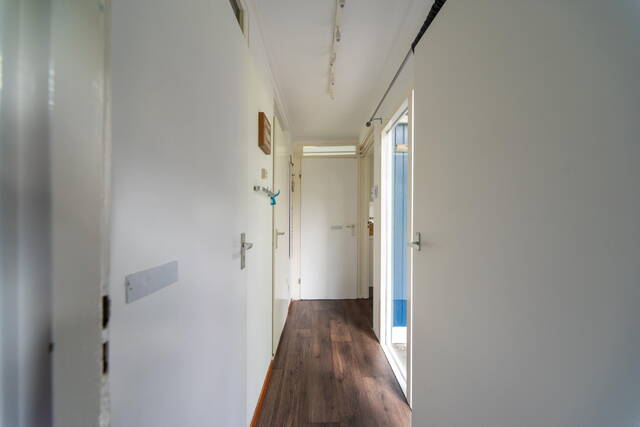 De keuken is van alle gemakken voorzien zoals een (compacte) vaatwasser, gaskookplaat, afzuigkap, oven en zelfs aan de klein huishoudelijke apparaten is gedacht. Zo vindt u hier onder meer een koffiezetapparaat, waterkoker en broodrooster. De keuken is uitgevoerd in een tijdloze witte kleur die nog jaren mee kan. Op de vloer zien we een contrasterende donkere houten laminaatvloer die prima onderhouden is en makkelijk schoon te maken is.
