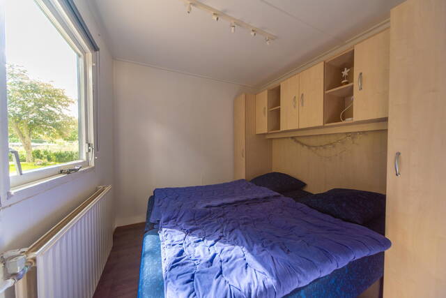 Als we binnenkomen in de hal valt gelijk het natuurlijke zonlicht op wat door het grote raam naast de voordeur naar binnenkomt. De centraal gelegen hal biedt toegang tot 2 slaapkamers van verschillend formaat, waarbij er in de grote slaapkamer een 2 persoons bed met kastombouw voor u klaar staat waar u nog de nodige spulletjes in kunt opbergen. De tweede slaapkamer is momenteel nagenoeg leeg, maar u zou hier prima een stapelbed in kunnen plaatsen, zodat u hier met 4 personen heerlijk kunt verblijven.