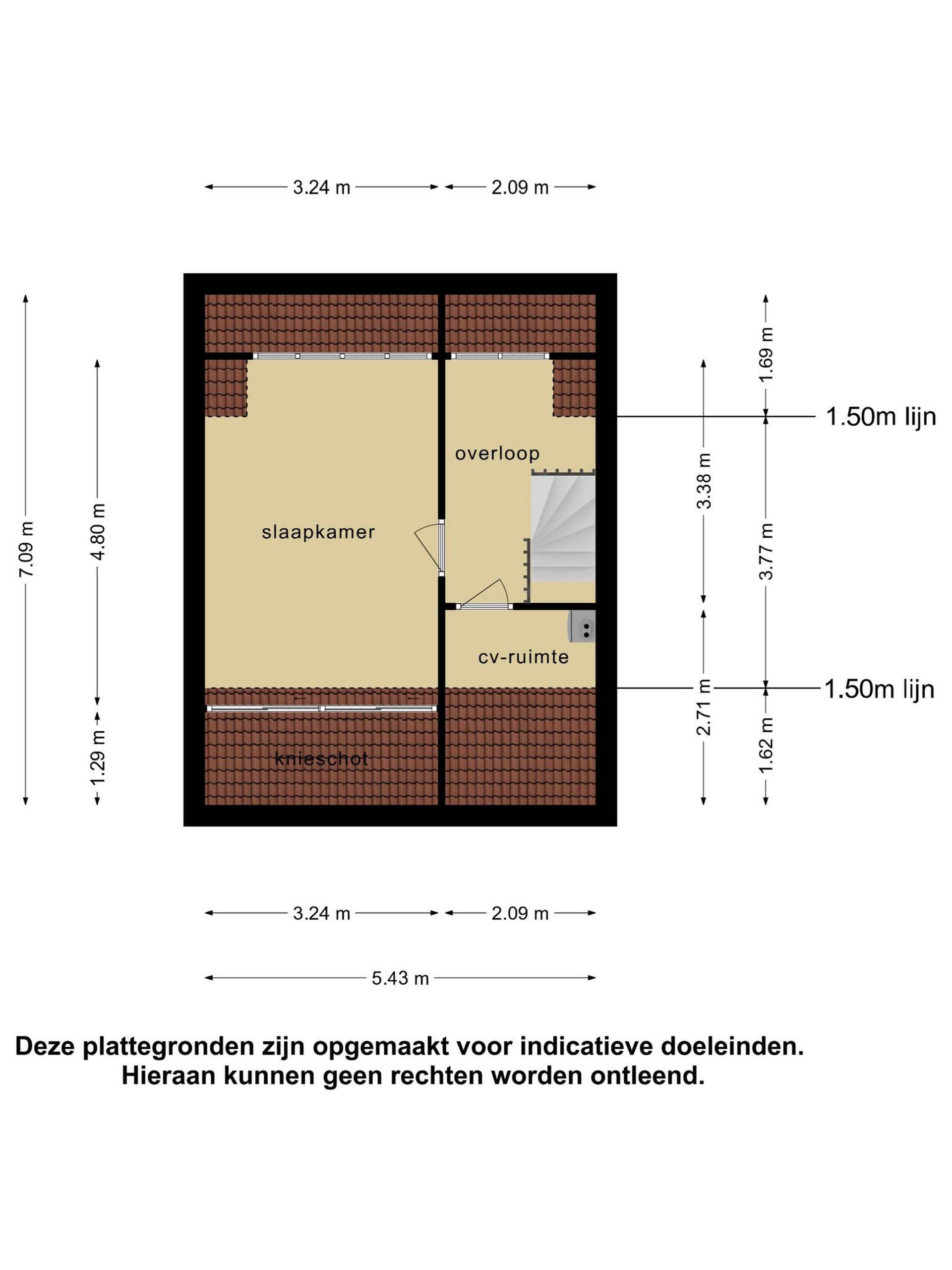 De zolder is keurig afgetimmerd en voorzien van bergruimtes achter de knieschotten.