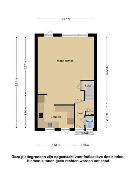 Hal/entree met toilet, meterkast en toegang tot de verdiepingen en de woonkamer.