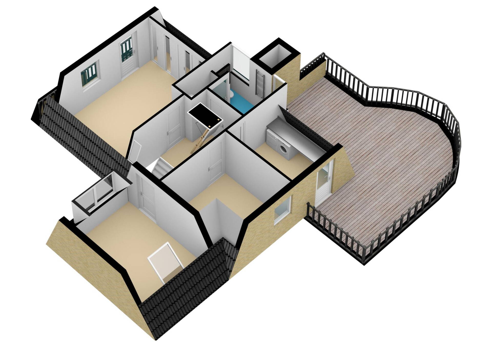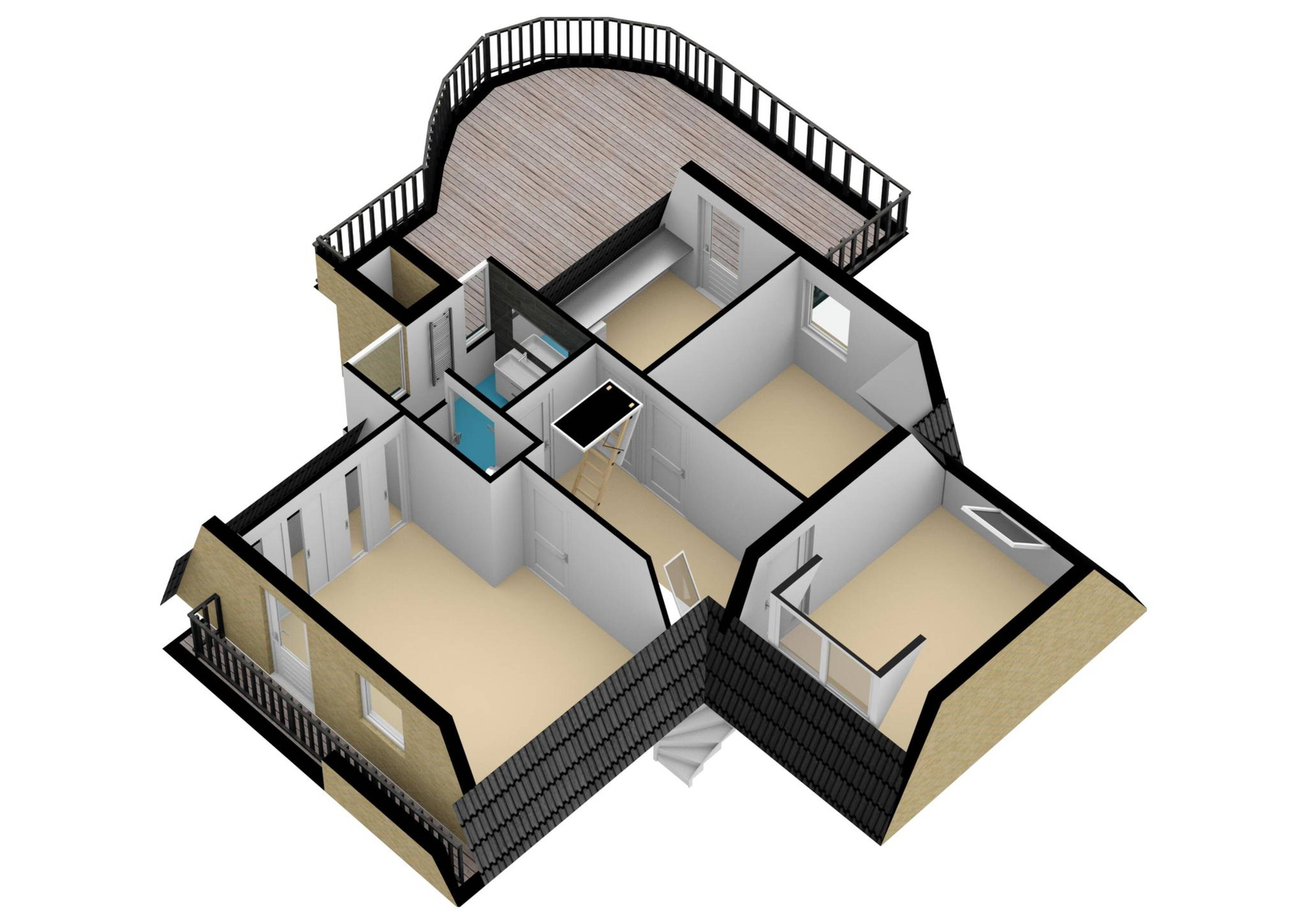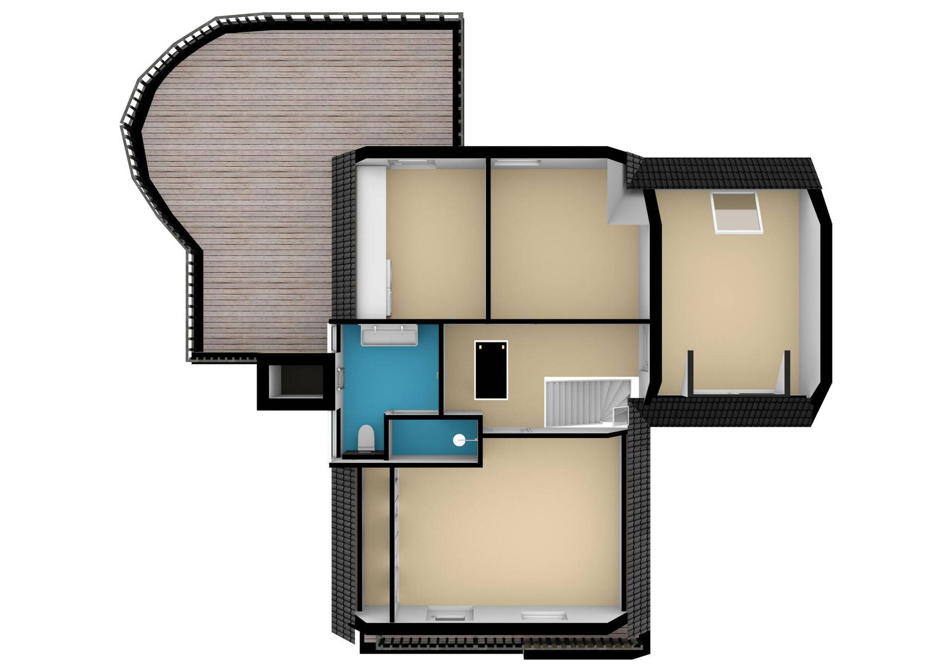 1e verdieping: op de 1e verdieping komt u op de overloop met toegang naar een 4-tal slaapkamers. Iedere slaapkamer heeft zo z’n speelse details. De slaapkamer aan de voorzijde heeft toegang tot een balkon en is voorzien van een vaste kastenwand. Een slaapkamer aan de achterzijde, dat door de huidige eigenaren wordt gebruikt als wasruimte geeft toegang naar het zeer riante dakterras, waar u eveneens de mogelijkheid heeft om heerlijke loungestoelen te plaatsen en ’s avonds na het werk nog heerlijk van de zon kunt genieten. Op de garageopbouw treft u een riante slaapkamer aan met een dakkapel aan de voorzijde en een dakraam aan de achterzijde. Deze kamer is ook geschikt als kantoorruimte, u heeft veel lichtinval in de kamer. U zult verbaasd zijn over de ruimte die u op deze etage aantreft. Alle 4 de slaapkamers zijn keurig afgewerkt.
