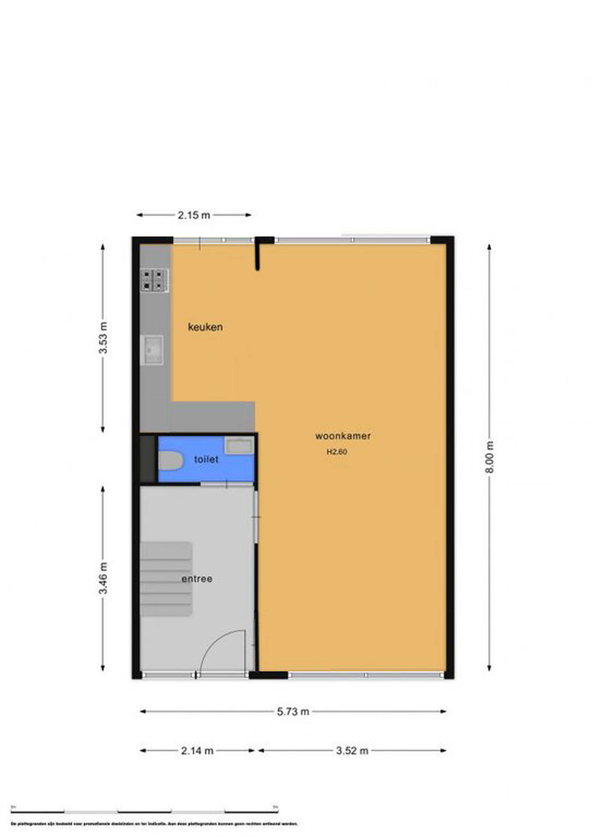 Indeling: Begane grond: Entree, hal met meterkast, trap naar de 1e verdieping, trapkast, deur naar de woonkamer en een toilet ruimte voorzien van een vrijhangend toilet. Woonkamer gesitueerd aan de voorzijde van de woning, open hoekkeuken aan de achterzijde. De keuken is voorzien van een vaatwasser , gaskookplaat, afzuigkap, combimagnetron, losse koelkast, apothekerskast en kunststof werkblad.