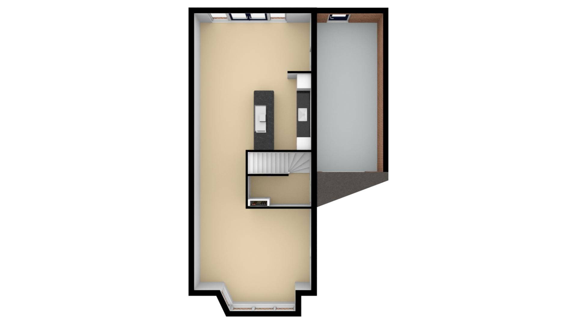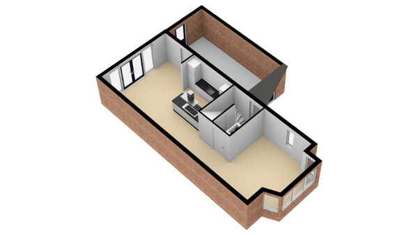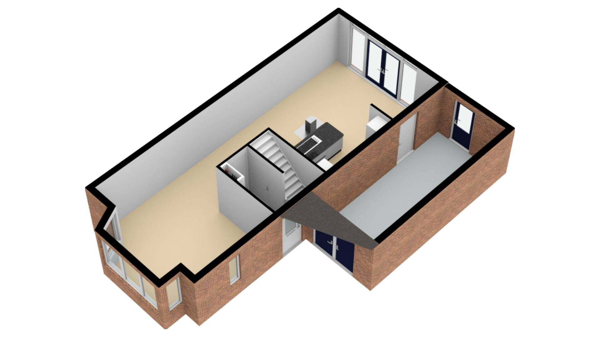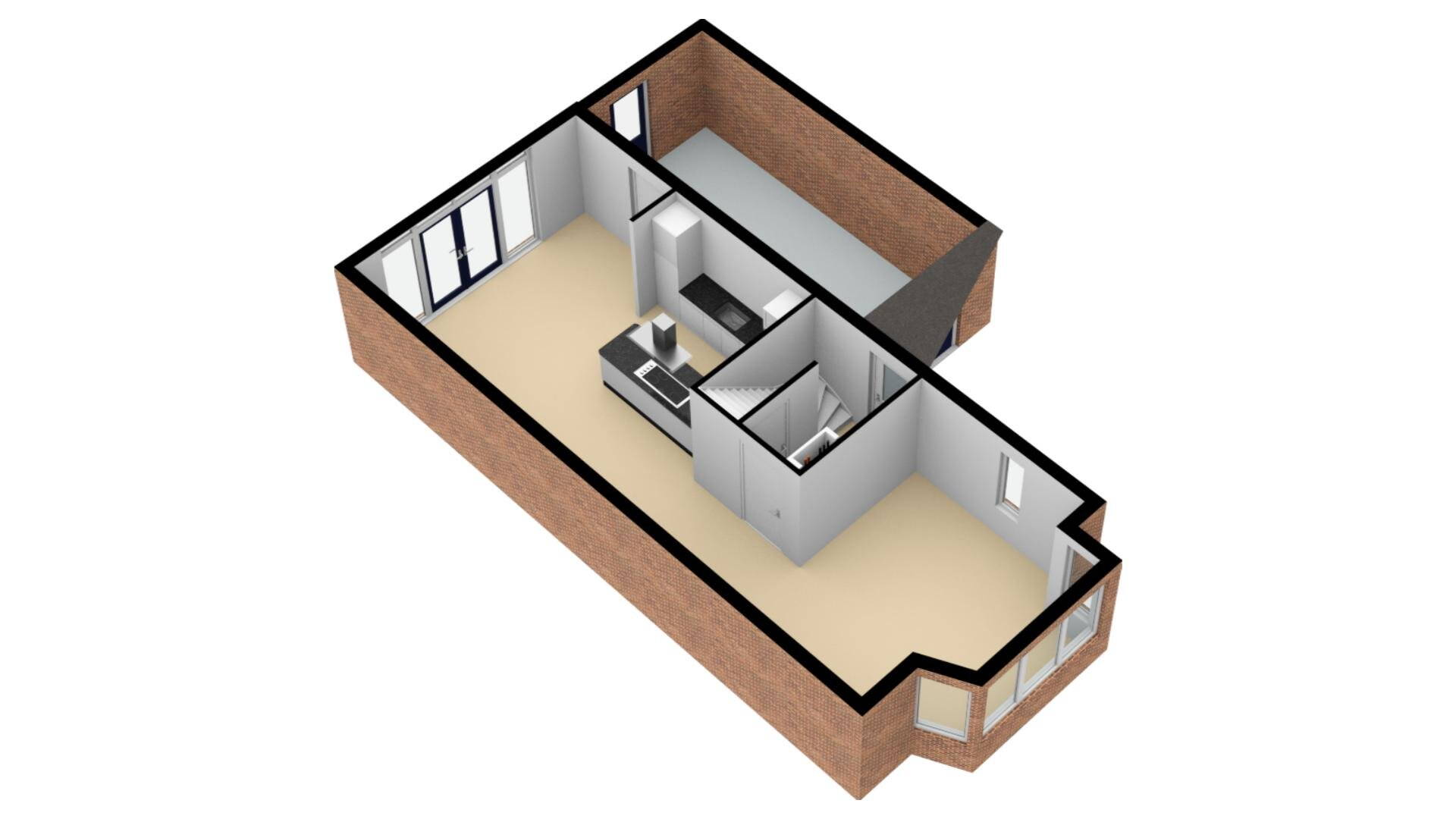De straatgerichte woonkamer is voorzien van een erker, waardoor u een ruim zitgedeelte tot uw beschikking heeft. Hier kunt u bijvoorbeeld prima een heerlijke grote loungebank plaatsten. Op de vloer treft u een PVC vloer aan. Door de praktische vormgeving kunt u op diverse wijzen uw interieur indelen.