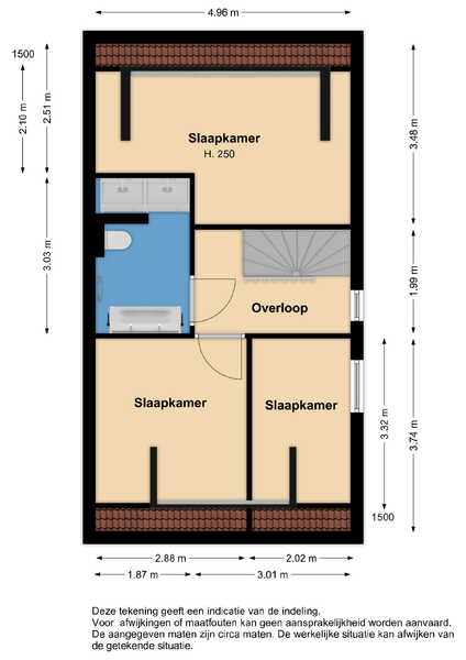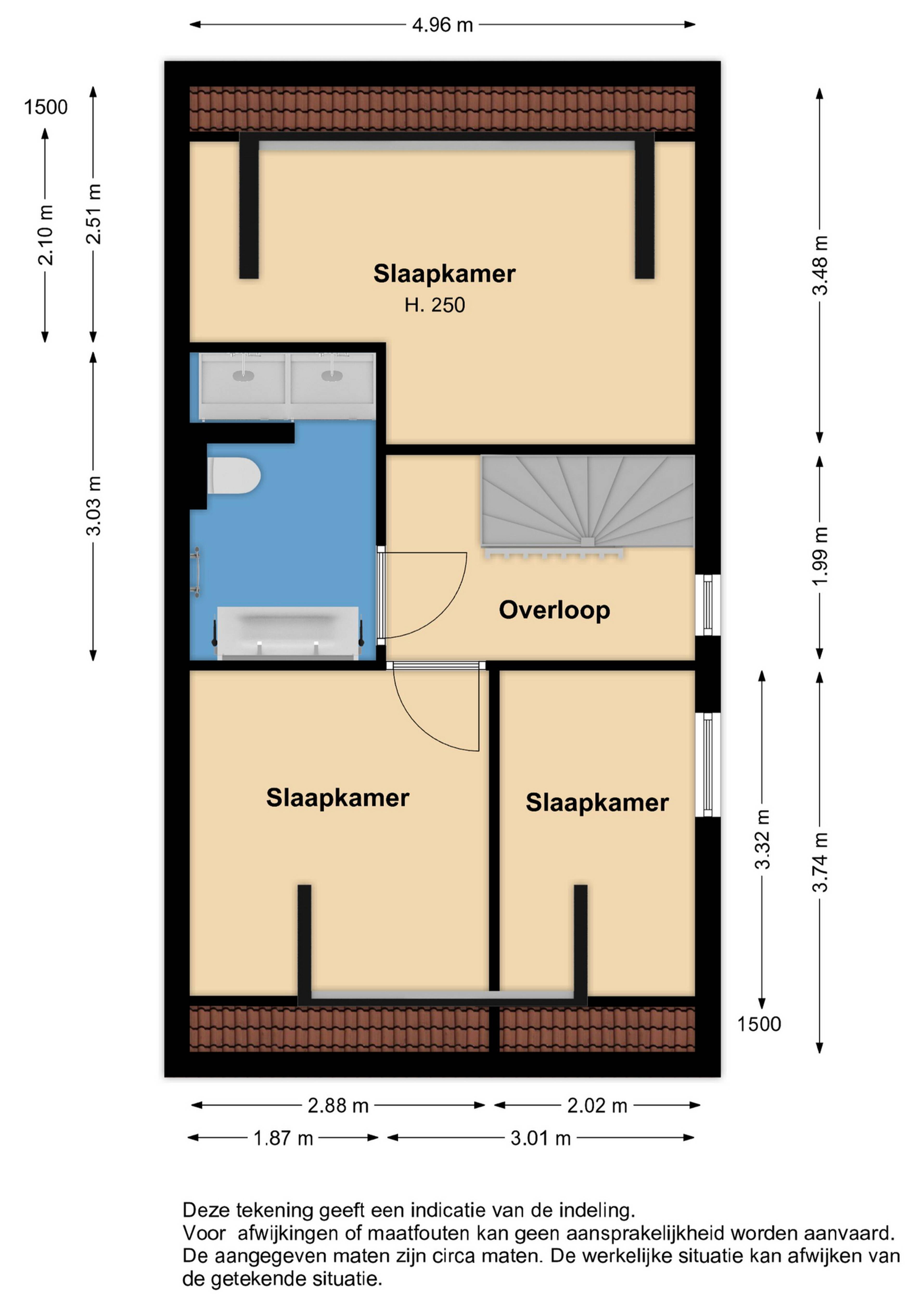 1e verdieping: op de 1e etage zijn een 3-tal slaapkamers van verschillende afmetingen aanwezig. Alle slaapkamers zijn keurig afgewerkt en ieder met eigen karakteristieken. Zowel aan de voor- als de achterzijde heeft u in de slaapkamers een dakkapel tot uw beschikking, waardoor u extra ruimte heeft. De slaapkamer aan de achterzijde is over de volle breedte van de woning gesitueerd en dus eveneens voorzien van een dakkapel. In deze slaapkamer treft u bovendien airconditioning aan, waardoor u in de zomer heerlijke verkoelende nachten heeft. De dakkapel aan de voorzijde van de woning is voorzien van rolluiken.