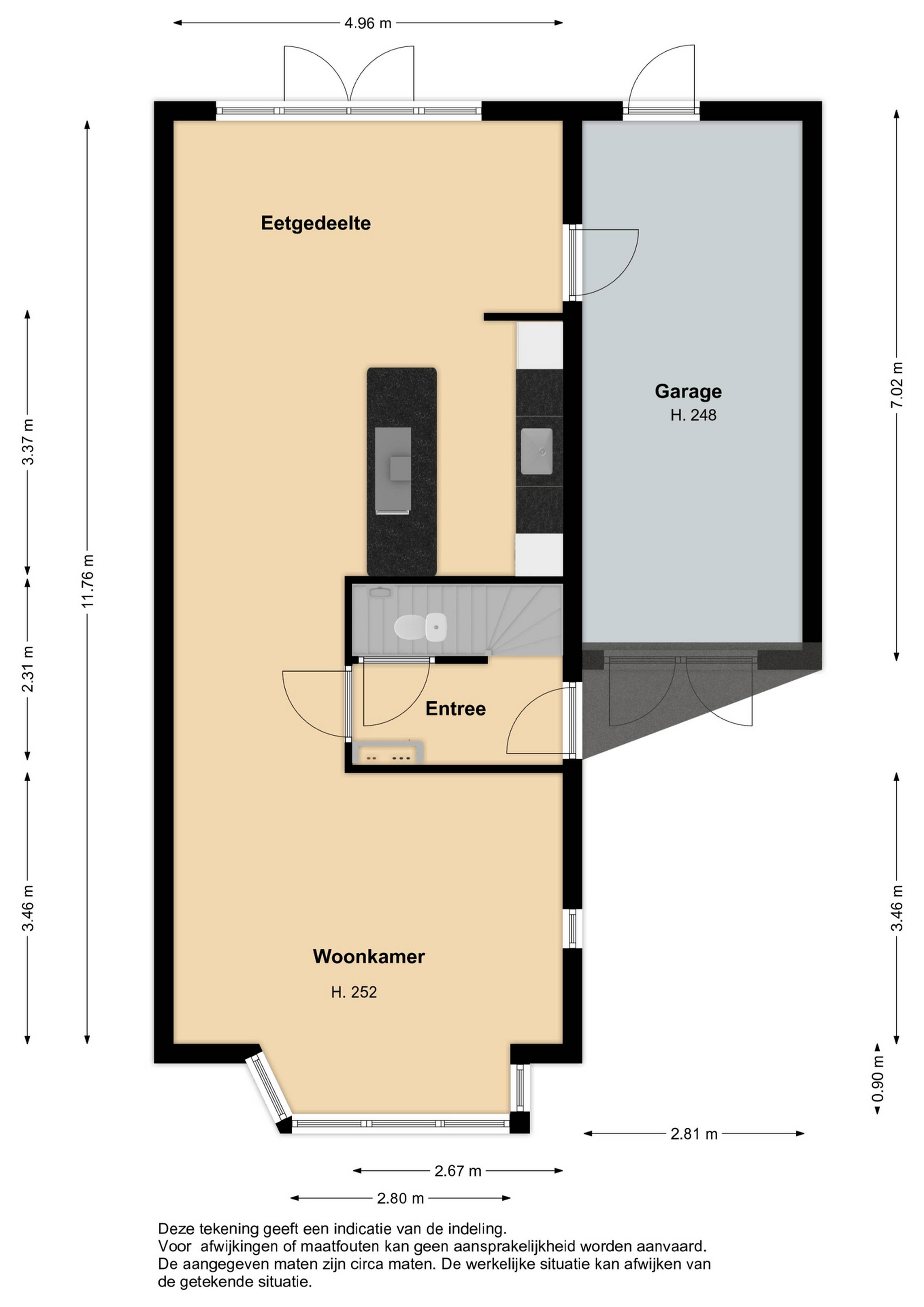 Garage: direct naast de keuken is de garage gelegen. Via de woon/leefkeuken kunt u deze ruimte inpandig eenvoudig bereiken. De garage is verlengd, waardoor u prima uw tuinmeubelen, tuingereedschap, fietsen of uw auto een plekje kunt geven. Aan de voorzijde kunt u op het garagepad meerdere auto’s op eigen erf parkeren. De achtergelegen tuin is ook via de garage te bereiken. Aan de voorzijde van de garage zijn kunststof openslaande garagedeuren aanwezig.