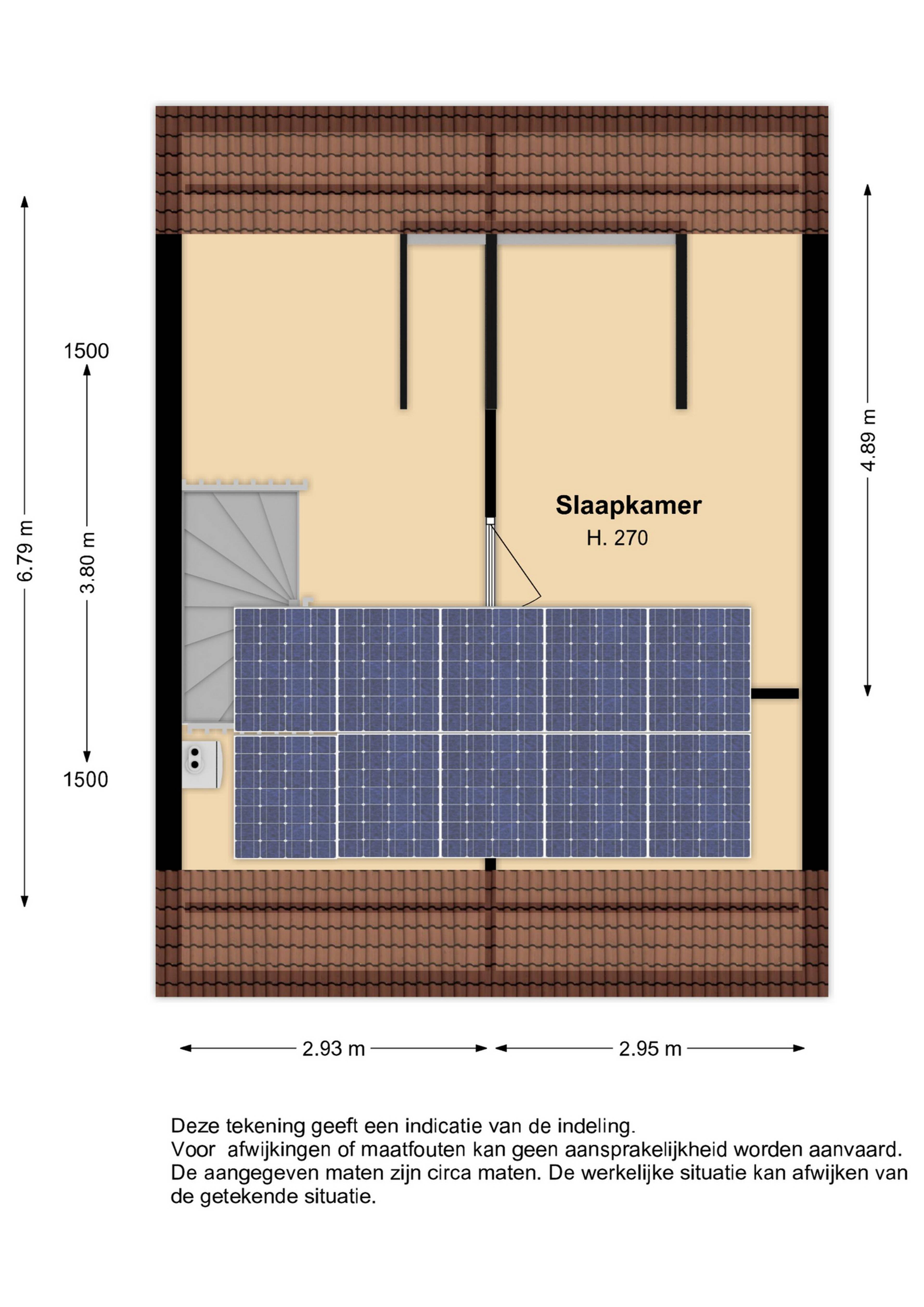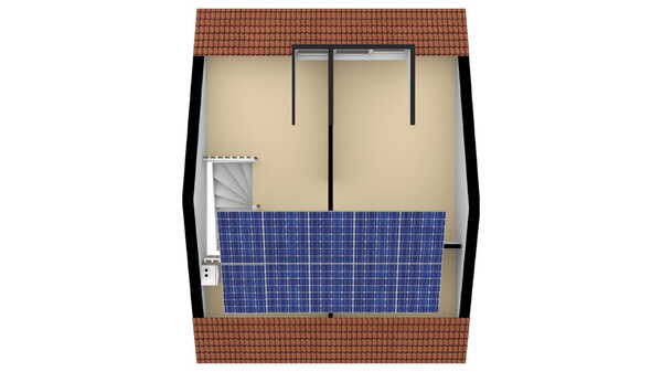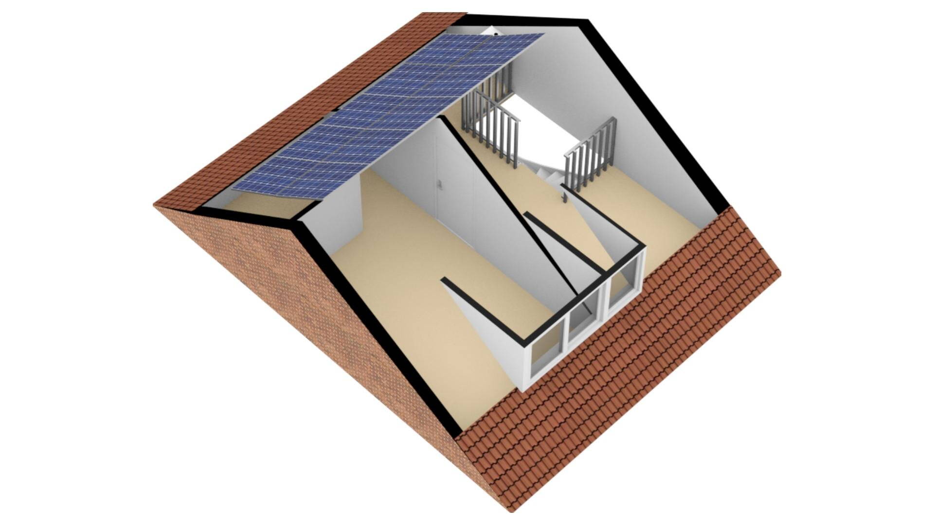 2e verdieping: via de vaste trap komt u op de 2e verdieping. Hier heeft u een zeer ruime zolder tot uw beschikking. Op deze verdieping is een dakkapel met flinke afmetingen aanwezig, waardoor u ook op de voorzolder voldoende daglicht heeft. Hier zou u ook eventueel uw wasmachine een plaatsje kunnen geven. Daarnaast treft u hier de HR-CV combiketel en de omvormer van de zonnepanelen aan. Hier heeft u eveneens nog voldoende ruimte voor het opbergen van persoonlijke spulletjes. De slaapkamer welke op deze verdiepingsvloer is gemaakt is natuurlijk een prachtige tienerkamer!