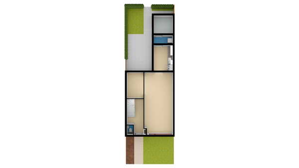 De woning is voorzien van een volledig betegelde moderne badkamer in lichte kleurstelling. De badkamer is uitgevoerd met een inloopdouche met drain, wastafelmeubel en hangcloset. Uiteraard ontbreekt de design-radiator niet.