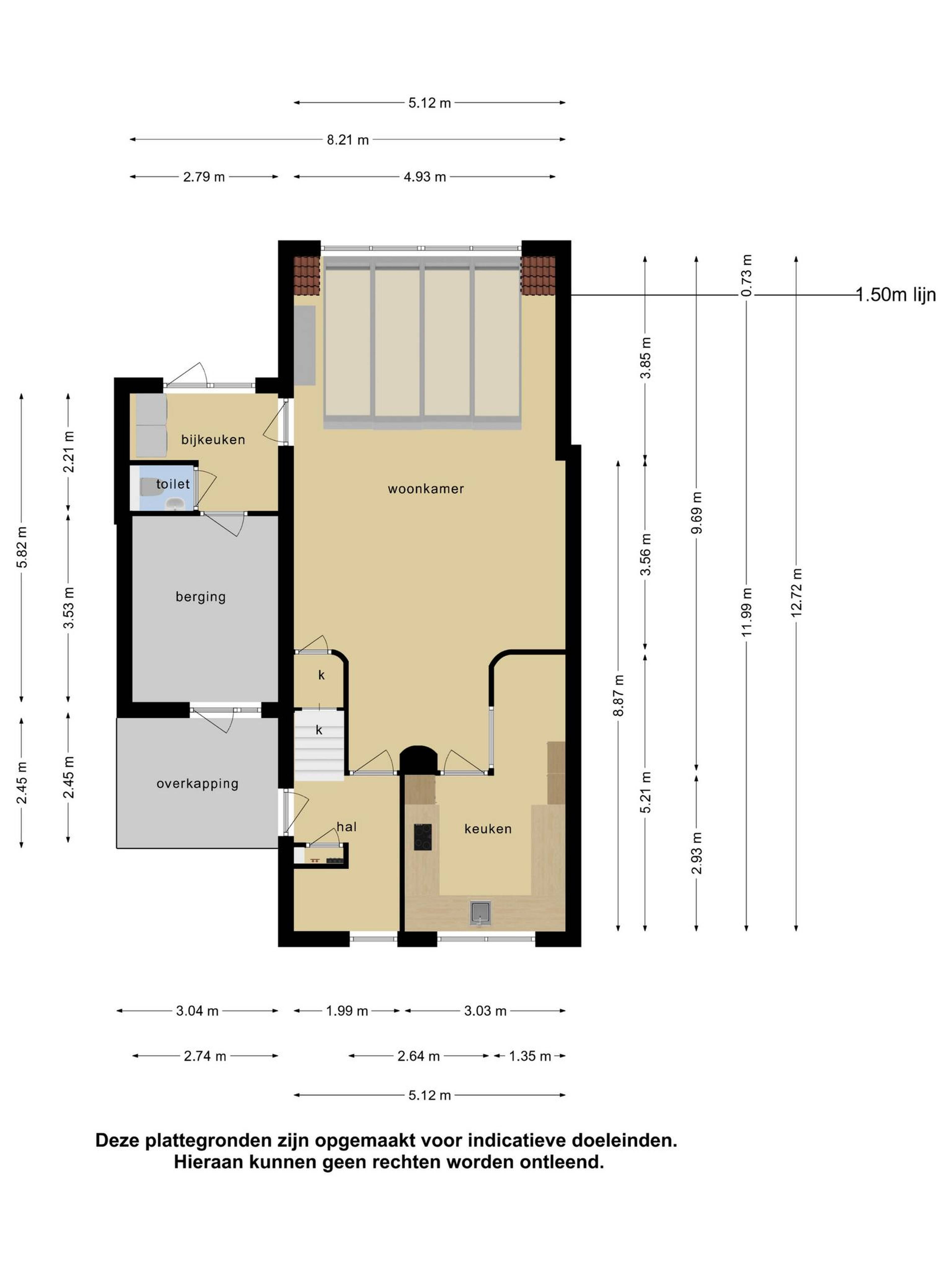Vanuit de bijkeuken loopt u door naar de achtertuin en naar de inpandige berging met loopdeur aan de voorzijde van de woning.