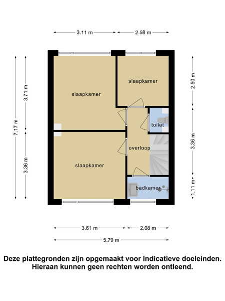 Op de 1e verdieping bevinden zich 3 slaapkamers, waarvan er 2 dusdanig groot zijn dat er een 2-persoonsbed kan staan. Deze 2 slaapkamers zijn bovendien voorzien van rolluiken.