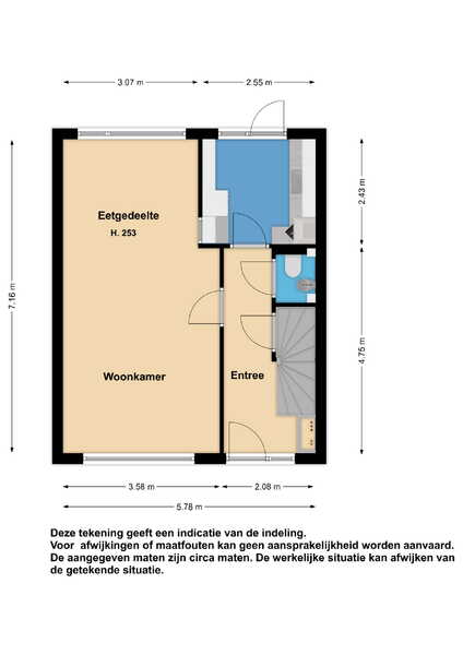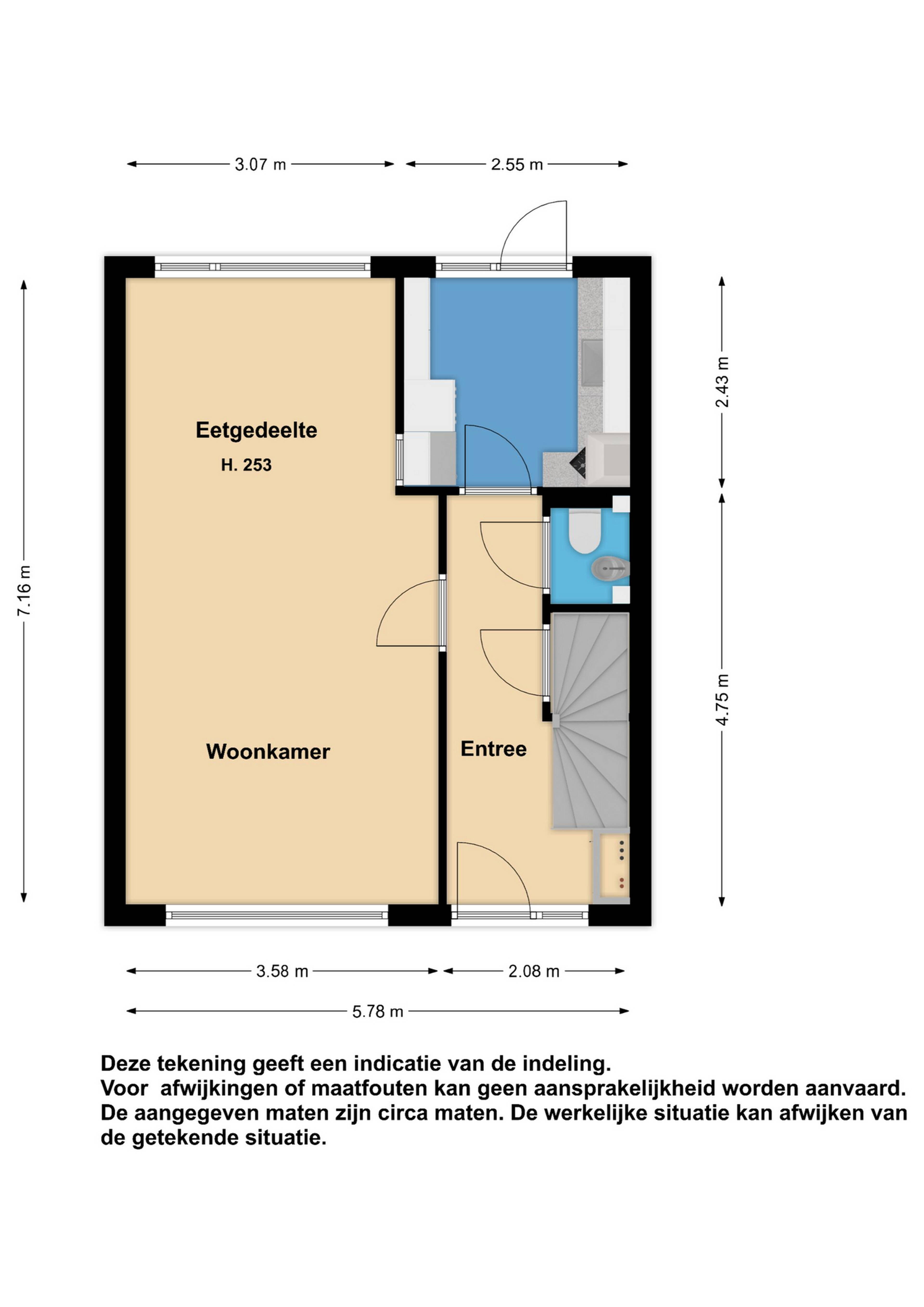 Begane grond: via de entree aan de voorzijde van de woning komt u in de ruime hal met garderoberuimte, meterkast en toiletruimte met hangcloset en fonteintje. Via de hal kunt u de 1e verdieping bereiken.