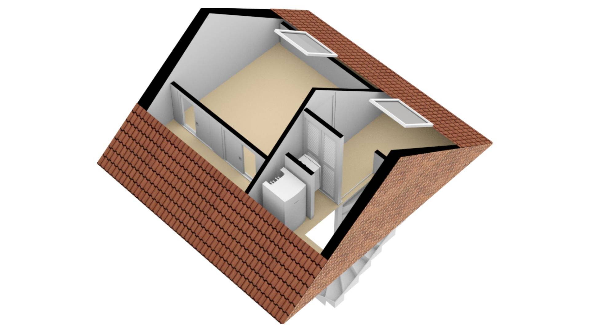 Op de zolderetage is bovendien nog voldoende ruimte aanwezig om overtollige spulletjes te bergen. De hete lucht installatie en de CV Combiketel zijn, in een afgesloten kast, eveneens op deze etage ondergebracht.