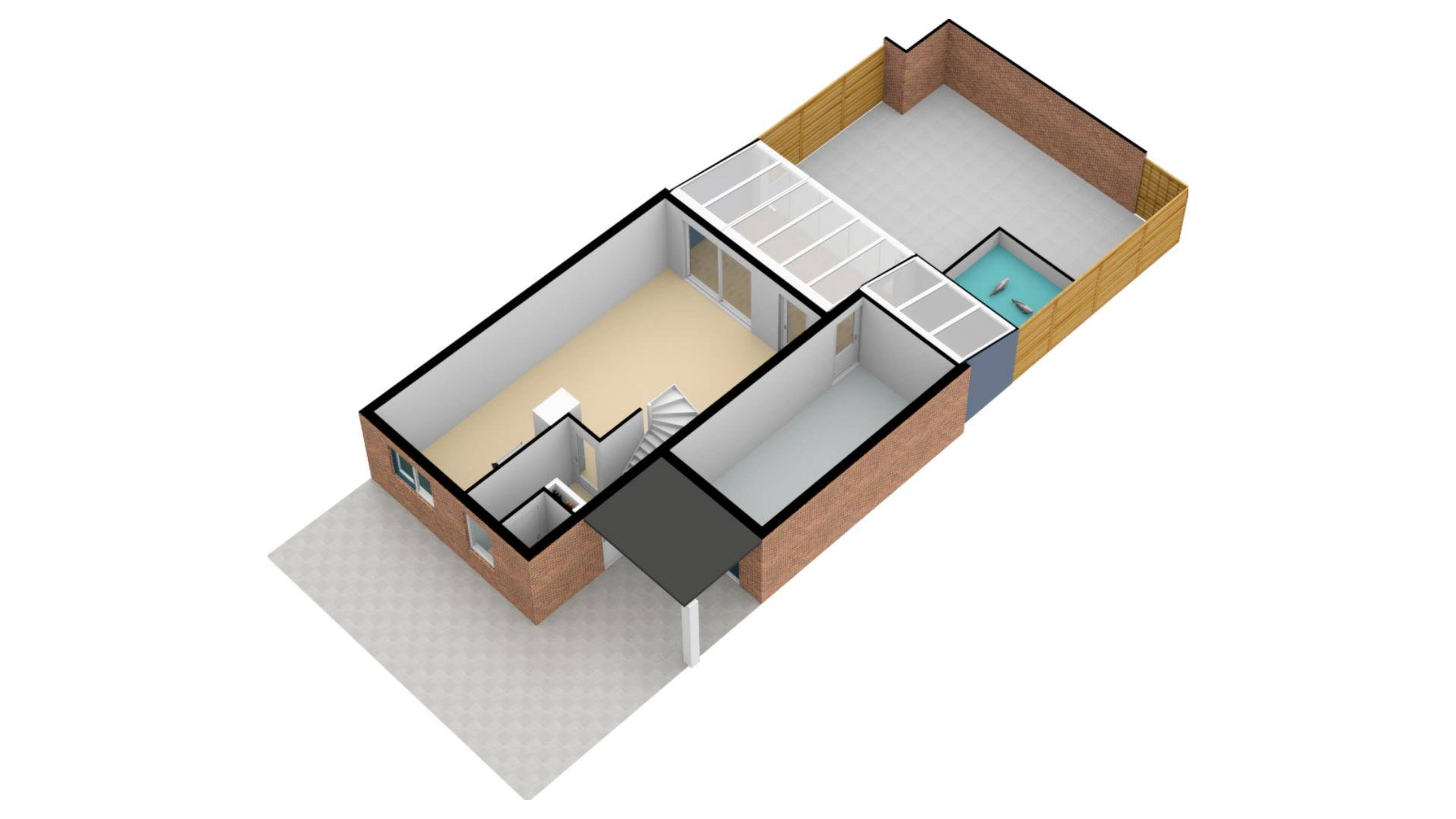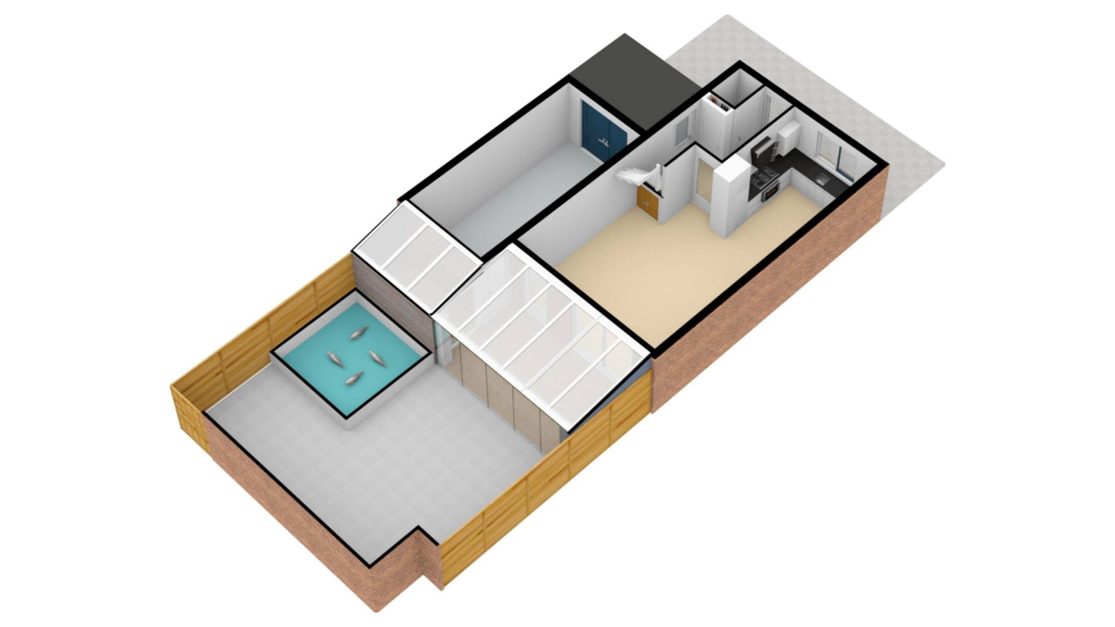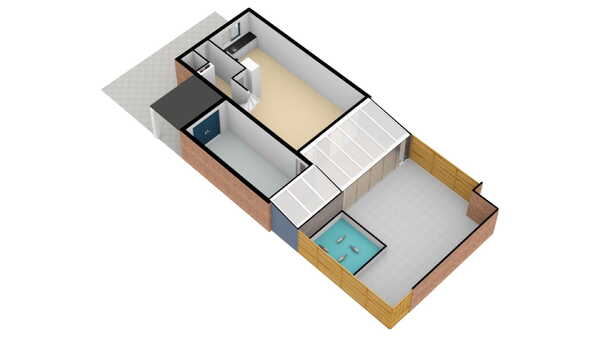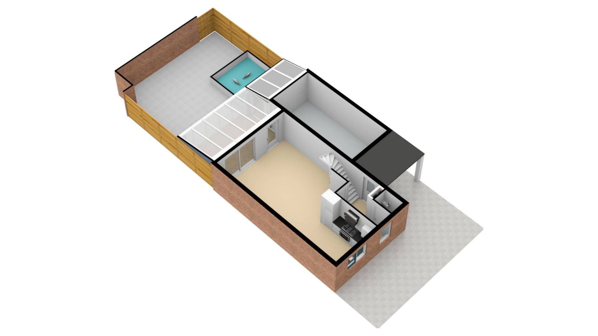 Dit had u niet gedacht! Een ruime tuingerichte woonkamer met een openslaande tuindeur aan de achterzijde naar de veranda met glazen schuifwand. De kamer is keurig afgewerkt met ondermeer plavuizen met een houtnerf look. Door het ontbreken van radiatoren kunt u ideaal uw woonkamer inrichten. U zult het met ons eens zijn dat een stamtafel in de woon/leefkeuken hier goed tot zijn recht komt.