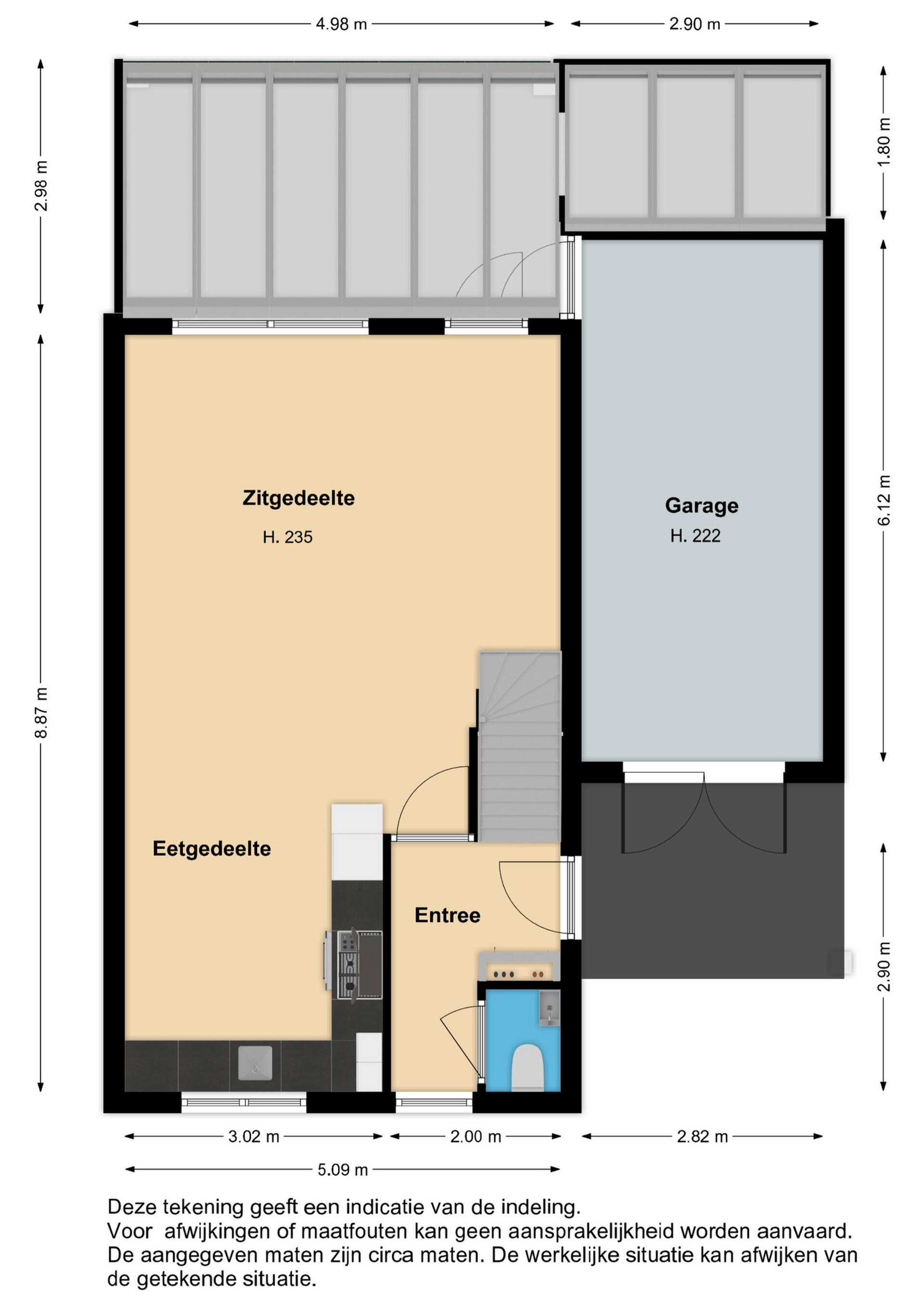 Begane grond: via de zijentree komt u in de hal met garderoberuimte, meterkast, moderne toiletruimte met hangcloset en fonteintje en toegang tot het woongedeelte. Bovendien heeft u hier de toegang tot de bovenliggende etages.