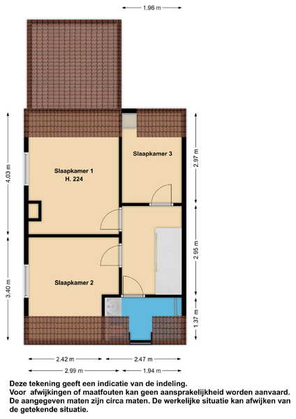 1e verdieping: op de 1e verdieping zijn een drietal slaapkamers van verschillende afmetingen gesitueerd. In 2 slaapkamers kunt u een 2 persoonsbed plaatsen. De kamers zijn keurig afgewerkt met strak stucwerk en trendy laminaatvloeren. Het ziet er allemaal spik en span uit!