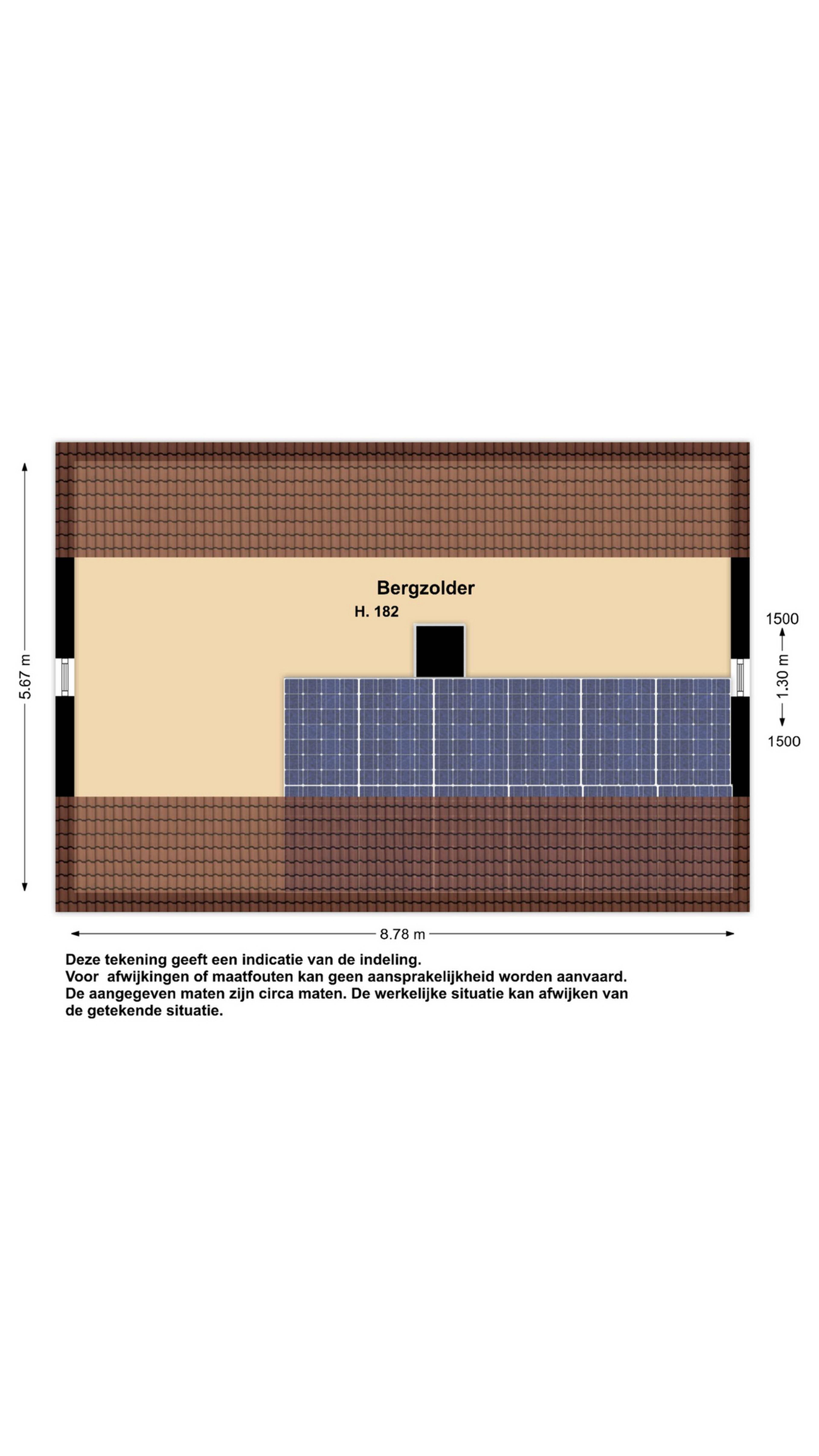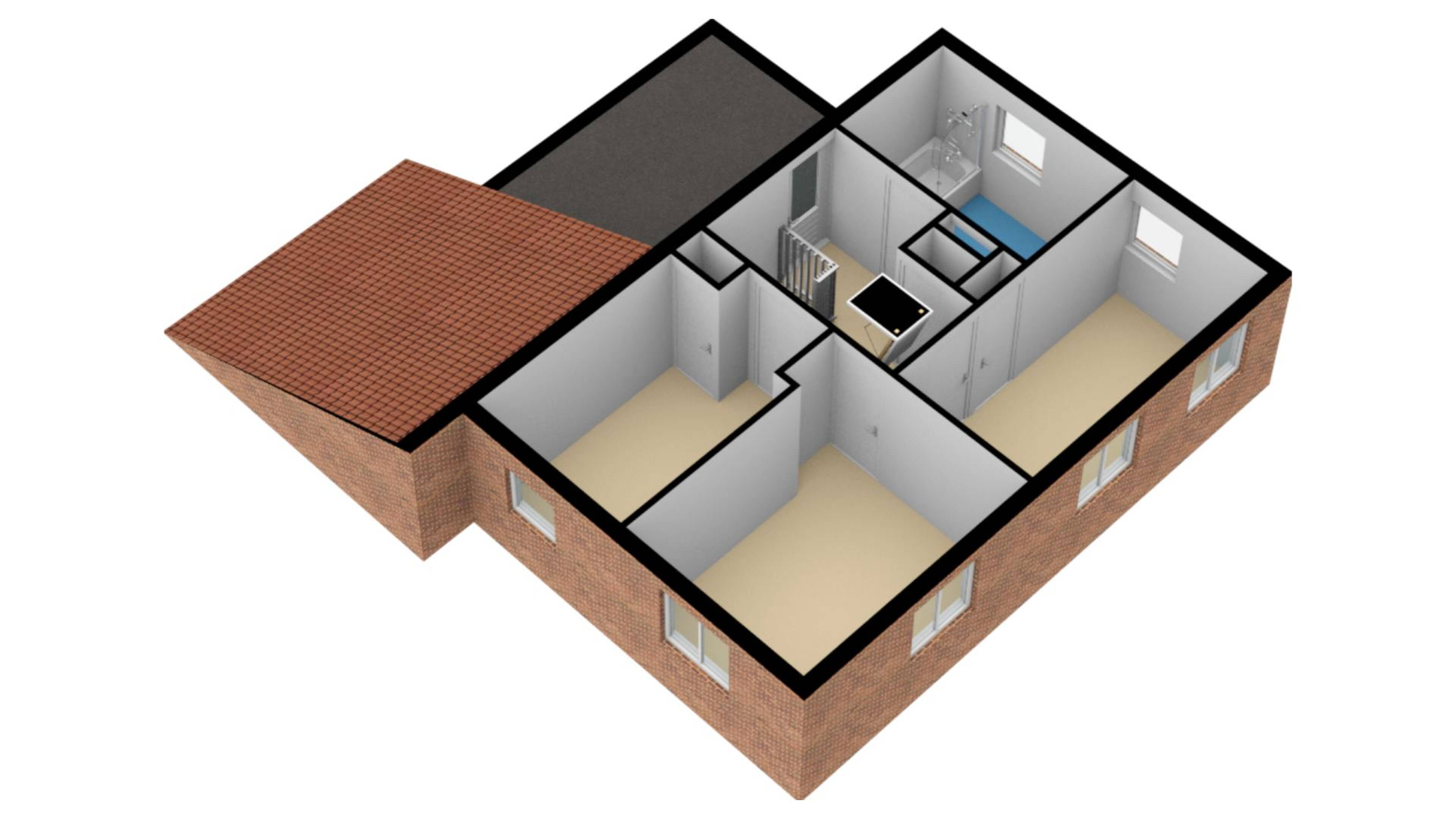 2e verdieping: de 2e verdieping is via een steektrap vanaf de overloop bereikbaar en betreft een bergzolder op (bijna) stahoogte. Een flinke ruimte waar u prima uw overtollige spulletjes een fijne opbergplek kunt geven.