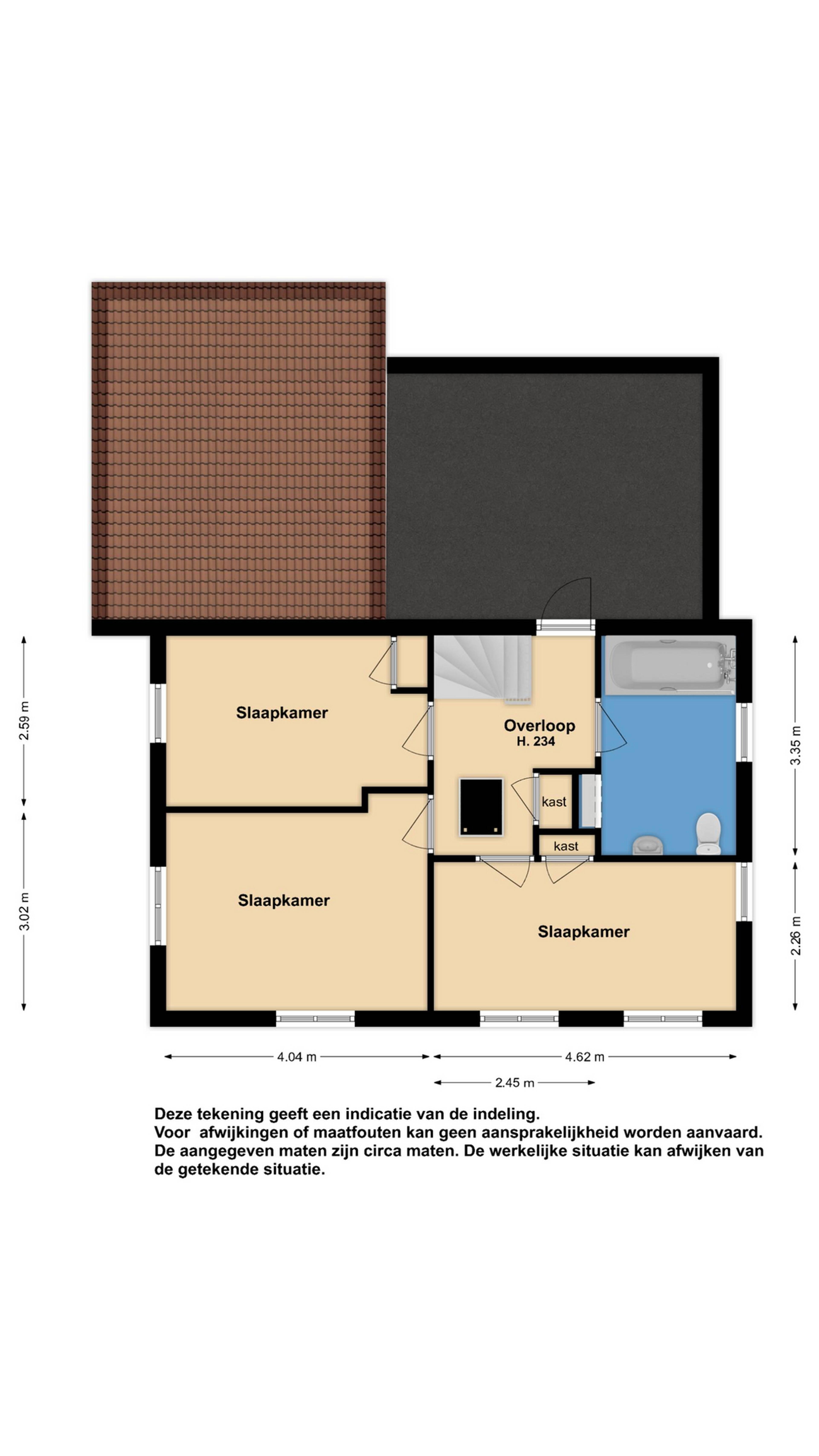 1e verdieping: op de 1e verdieping zijn 3 slaapkamers van verschillende afmetingen gesitueerd. Op de overloop is als een extra een vaste kast aanwezig. In alle slaapkamers kunt u prima een 2 persoonsbed plaatsen. De kamers zijn allen keurig afgewerkt en in 2 slaapkamers heeft u de beschikking over vaste kasten.
