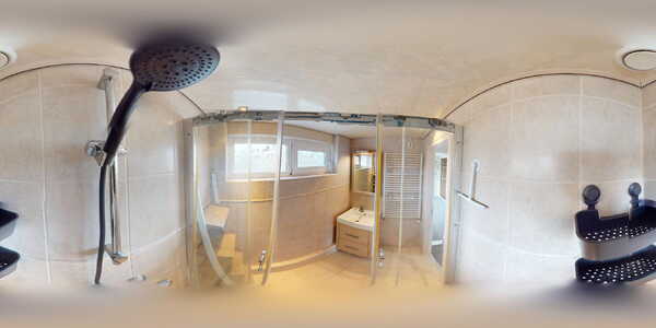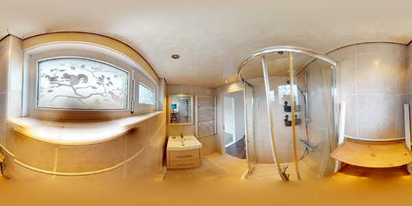 De keurige badkamer is voorzien van een ruime douchecabine en een wastafelmeubel. Daarnaast is hier een designradiator aanwezig.