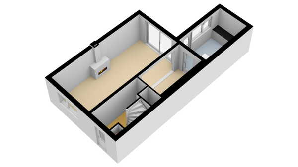 De woonkamer kenmerkt zich door het grote raam aan de voorzijde en een schuifpui aan de achterzijde, waardoor de kamer erg licht en zonnig is. Aan de voorzijde bevindt zich het woongedeelte, terwijl het eetgedeelte aan de achterzijde is gesitueerd. De vloer is afgewerkt met een laminaatvloer en het plafond is afgewerkt met strak stucwerk. Dankzij de praktische vormgeving van de woonkamer, heeft u verschillende opties voor het inrichten van uw interieur. De aanwezige gashaard zorgt voor gezelligheid en extra comfort tijdens de winterdagen!
