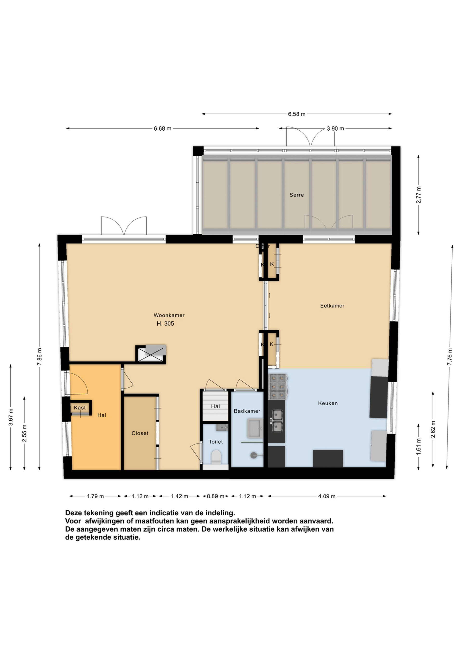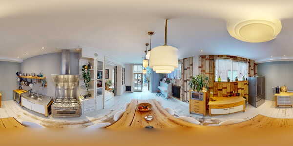 De ruime woon/leefkeuken is een balzaal! In deze keuken kunt u met gemak de hele familie uitnodigen met kerst. De half open keuken is niet direct vanuit het zitgedeelte zichtbaar, maar wel betrokken bij de leefruimte. Dit betekent voor u dat u tijdens het koken toch contact hebt met uw mede gezinsleden, en dat u na het koken toch eerst even van uw favoriete soap op TV in de zitkamer kunt genieten alvorens direct de behoefte opkomt om de keuken weer netjes op te ruimen. De trendy houten keuken is uitgevoerd met RVS details. De keuken is voorzien van een RVS afzuigkap, RVS Boretti 6 pits gas/ovencombinatie, vaatwasser, magnetron en koel/vriescombinatie. Uiteraard ontbreekt het in deze keuken niet aan opbergruimte en heeft u veel werkruimte. Geen probleem om met z’n allen te kokkerellen. U zult elkaar hier zeker niet in de weg lopen. Via de keuken kunt u middels de openslaande tuindeuren de achtergelegen serre bereiken.